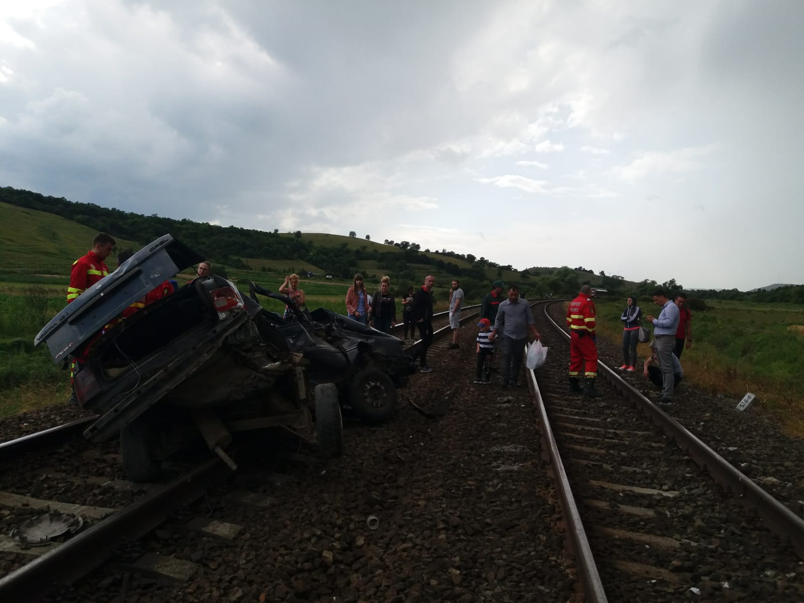 Un tren care circula pe relația Cluj-Napoca - Oradea a surprins in gabaritul caii ferate un autovehicul între haltele Gârbău- Macău.