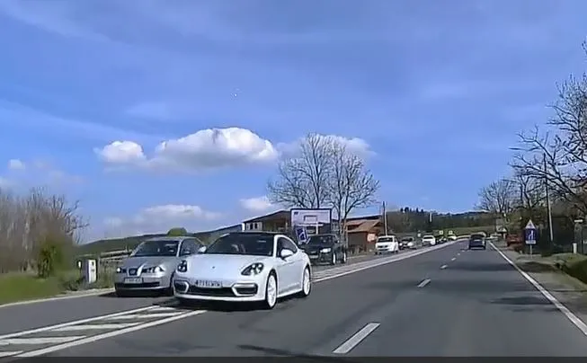 VIDEO Șofer „criminal”, la bordul unui Porsche Panamera, salvat de un miracol la o depășire pe Calea Turzii din Cluj-Napoca