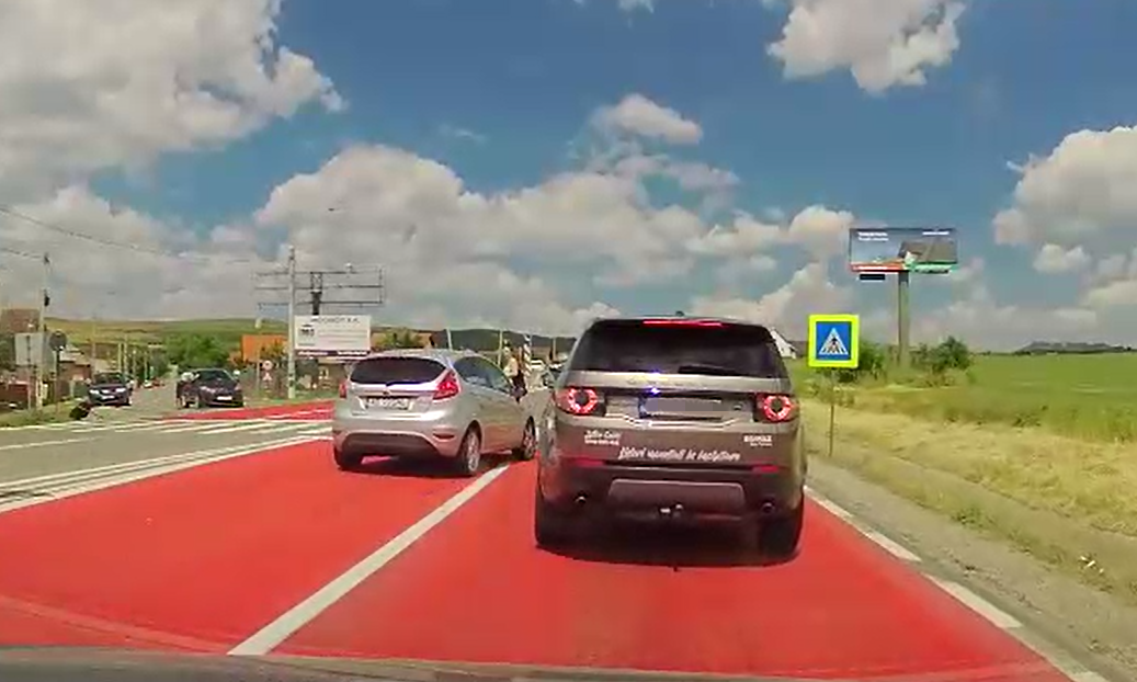 Conform înregistrării, două autoturisme aflate pe banda 1 — unul chiar în fața celui care a filmat — opriseră regulamentar pentru a acorda prioritate unei tinere care traversa legal, pe trecere. În acel moment, șoferița aflată pe banda 2, ajunge în dreptul trecerii de pietoni, și ca să nu izbească pietonul, taie calea celorlalți participanți la trafic și se strecoară în fața mașinii oprite pe banda 1.