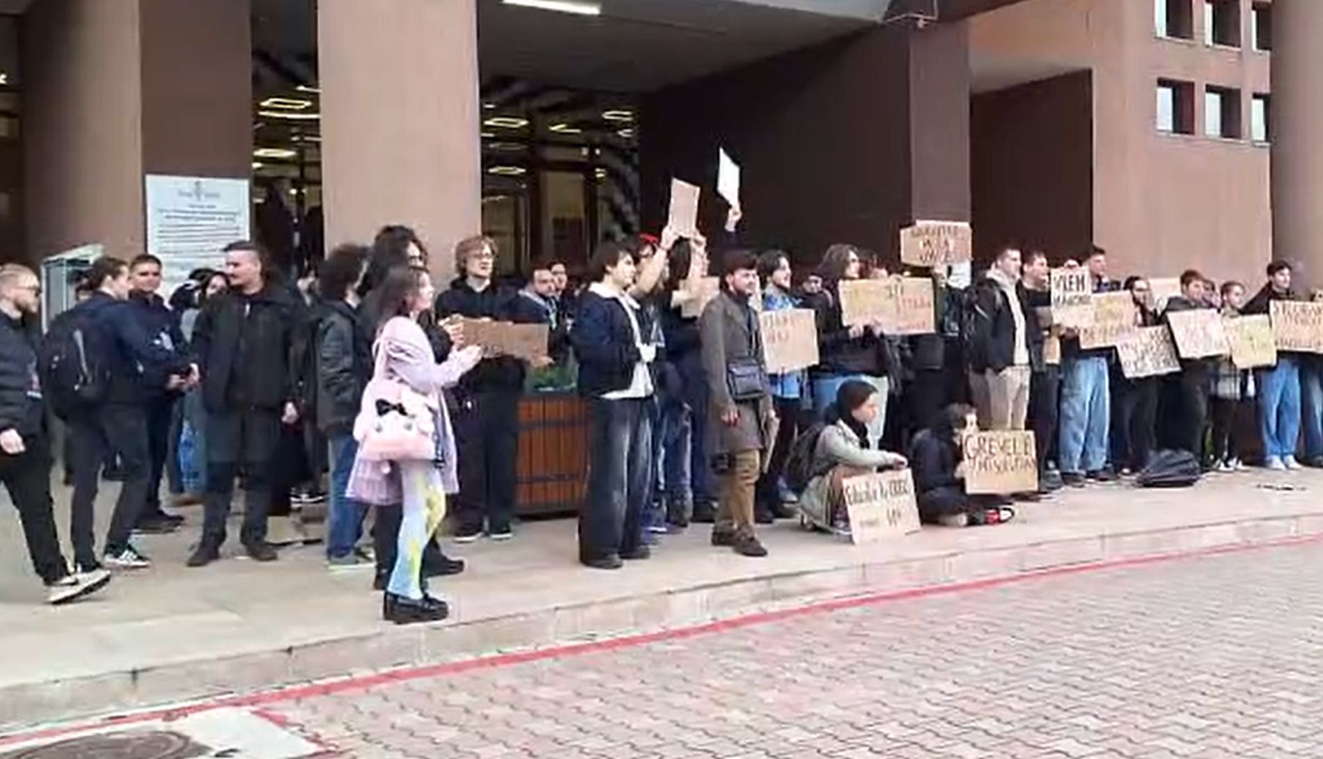 Studenții au ieșit în stradă în fața sediului FSEGA pentru a protesta față de mutarea forțată la CREIC