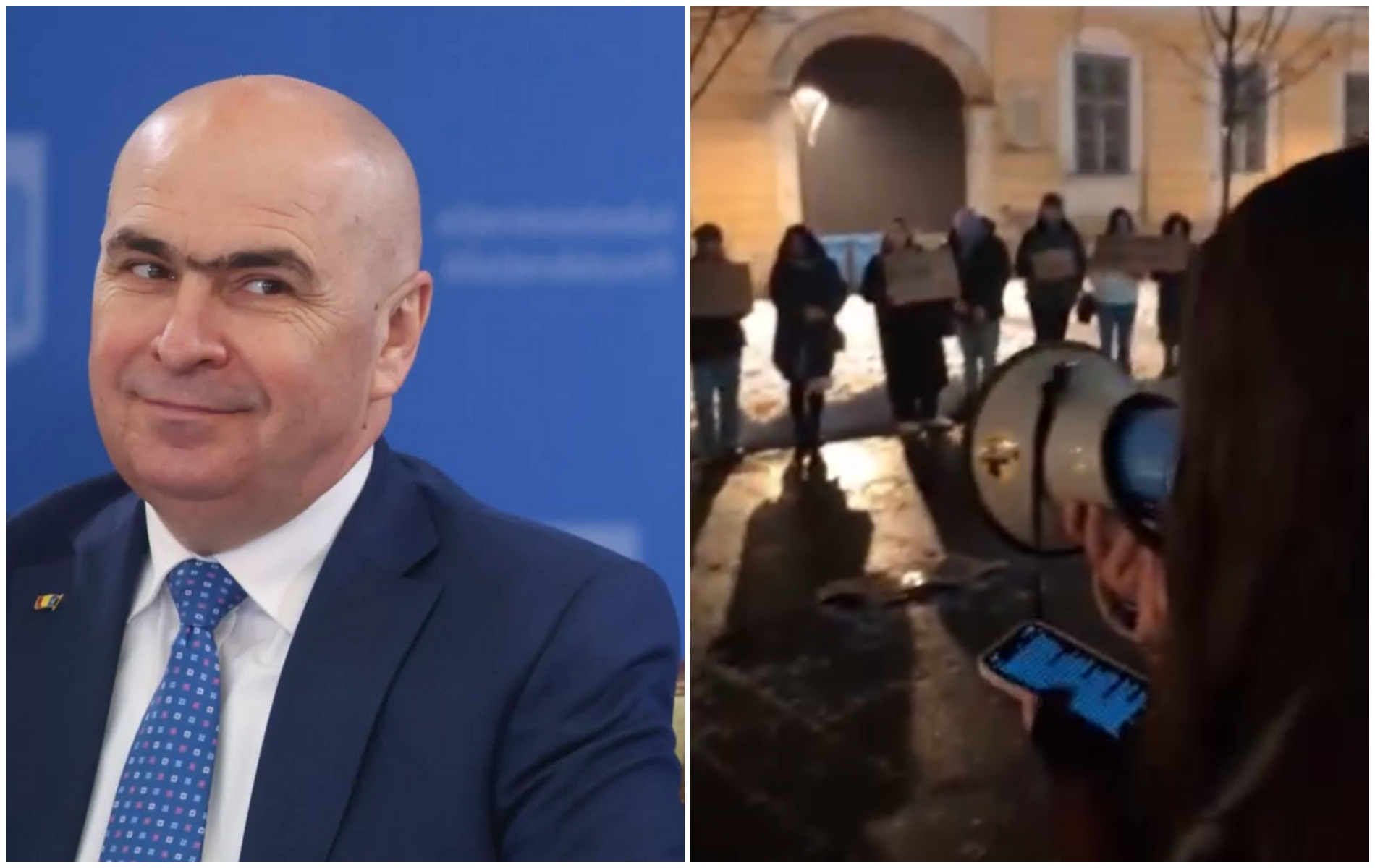 VIDEO. Studenții clujeni au ieșit în stradă pentru a protesta împotriva lui Ilie Bolojan. Un tânăr și-a făcut o pălărie cu un mesaj obscen: „M..... Bolojan