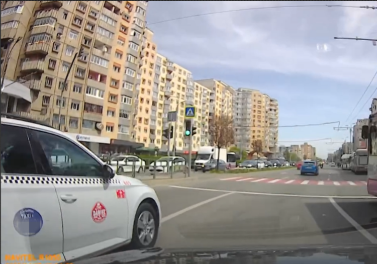 Potrivit relatării șoferului, totul a început atunci când taximetristul s-a încadrat greșit în sensul giratoriu, plasându-se pe banda destinată circulației pe direcția înainte, deși intenționa să vireze la stânga. Sigru că oricui i se poate întampla acest lucru, dar ceea ce a urmat a surprins complet șoferul care filmase incidentul.