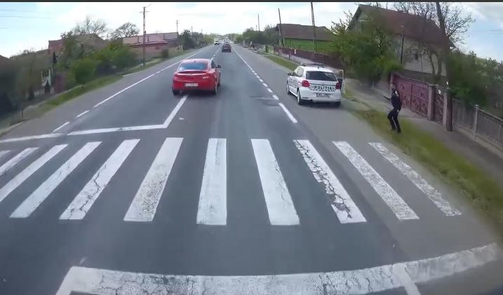 VIDEO Tupeu extrem al unui șofer pe străzile din Cluj: Depășește ilegal pe trecerea de pietoni chiar sub ochii polițiștilor. A urmat o urmărire ca-n filme
