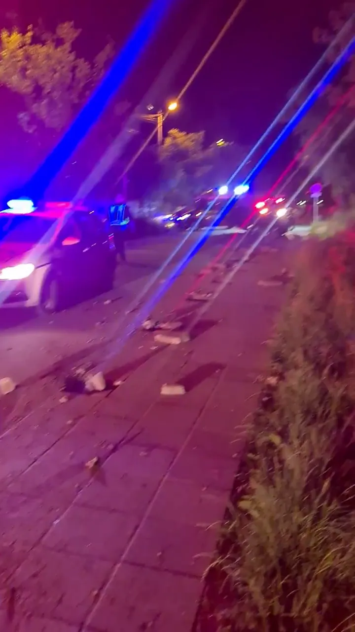 În urma impactului, au fost împrăștiate mai multe bucăți din trotuar ca urmare a dislocării stâlpilor metalici, fiind rănite două persoane cu vârste de 27 de ani.