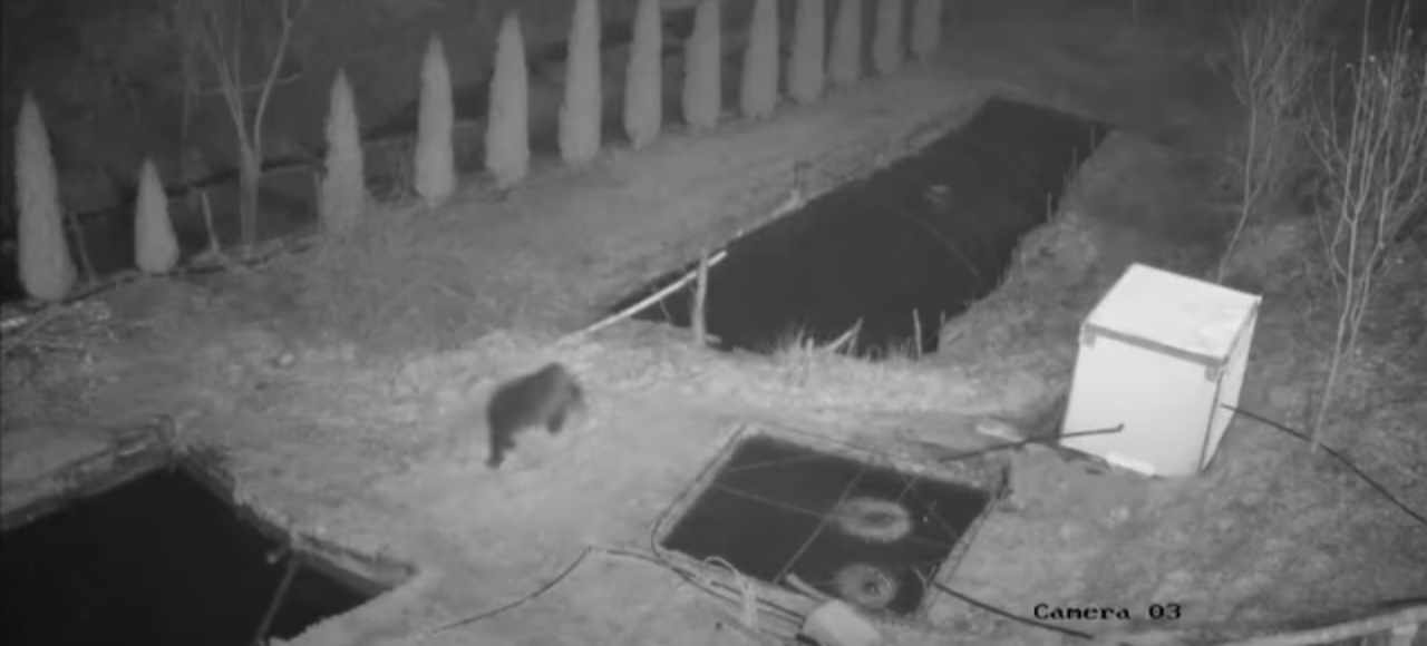 Pentru că este prea cald pentru hibernare, animalul își caută de mâncare. A ajuns la o crescătorie de păstrăvi din comuna Lupșa, în județul Alba.