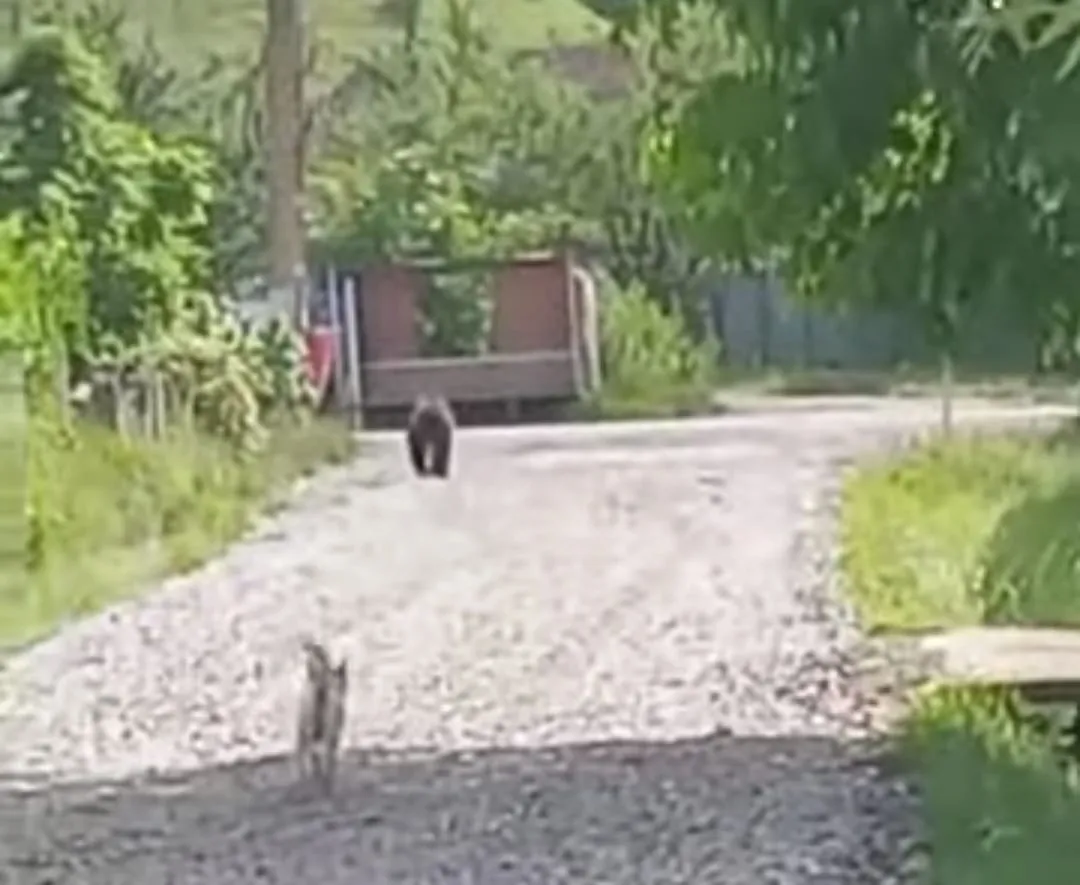 VIDEO. Urs pus pe fugă de un cățel curajos într-o localitate din Cluj! Un localnic a reușit să surprindă momentul