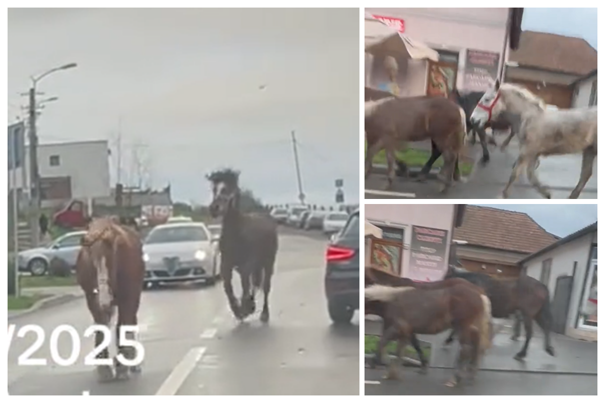 Cei zece cai au fost surprinși plimbându-se pe străzile orașului, în apropierea centrului comercial Auchan, într-o zonă intens circulată de mașini și pietoni.
