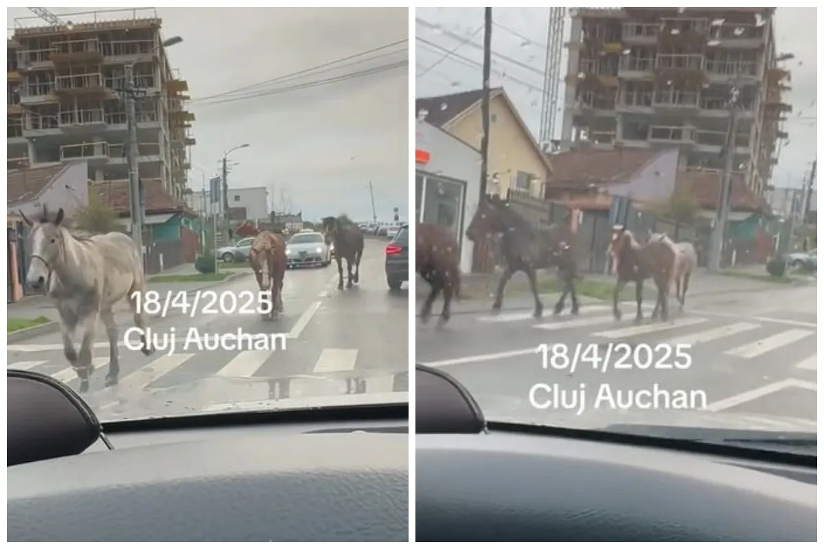 Clujenii au asistat la o scenă mai puțin obișnuită pentru un oraș: 10 cai au fost filmați în timp ce umblau nestingheriți pe o stradă din Cluj-Napoca în Vinerea Mare, chiar înainte de Paște, în cartierul Iris.