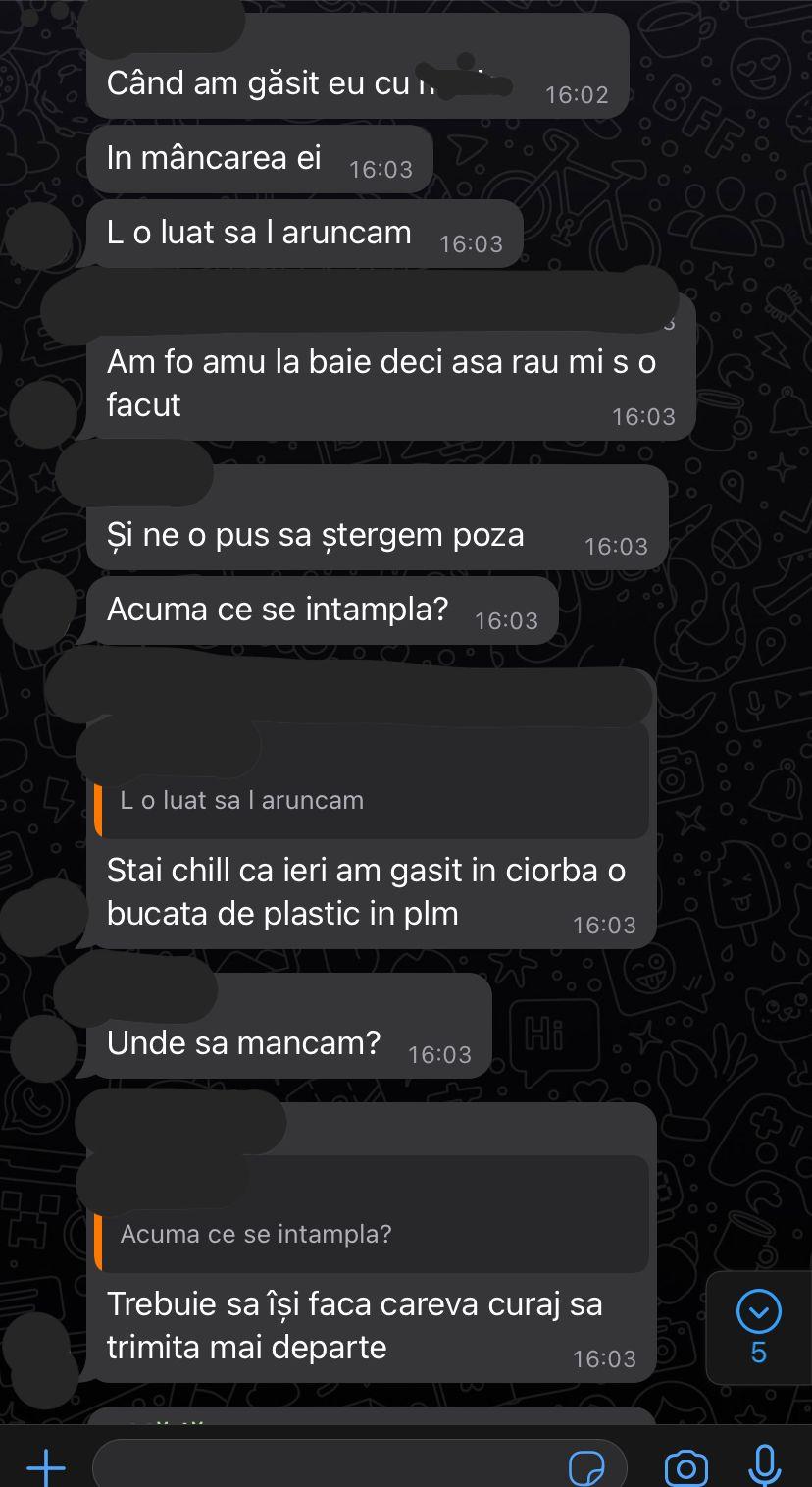 Aceasta a mai spus că mâncarea nu are un gust ciudat. ”Mâncarea se face la grămadă și nu se simte gustul diferit. Nu e ca la Academia de Poliție unde s-au găsit viermi și mâncarea avea un gust acru. La noi nu se simte nimic la gust nimic”, a mai precizat sursa citată.