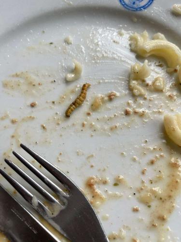 Elevii de la Școala de Poliție ”Septimiu Mureșan” din Cluj-Napoca au găsit viermi în mâncarea servită joi, 14 decembrie.