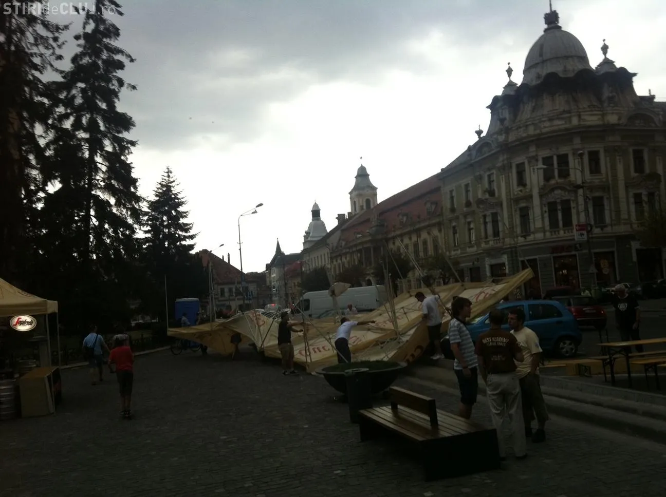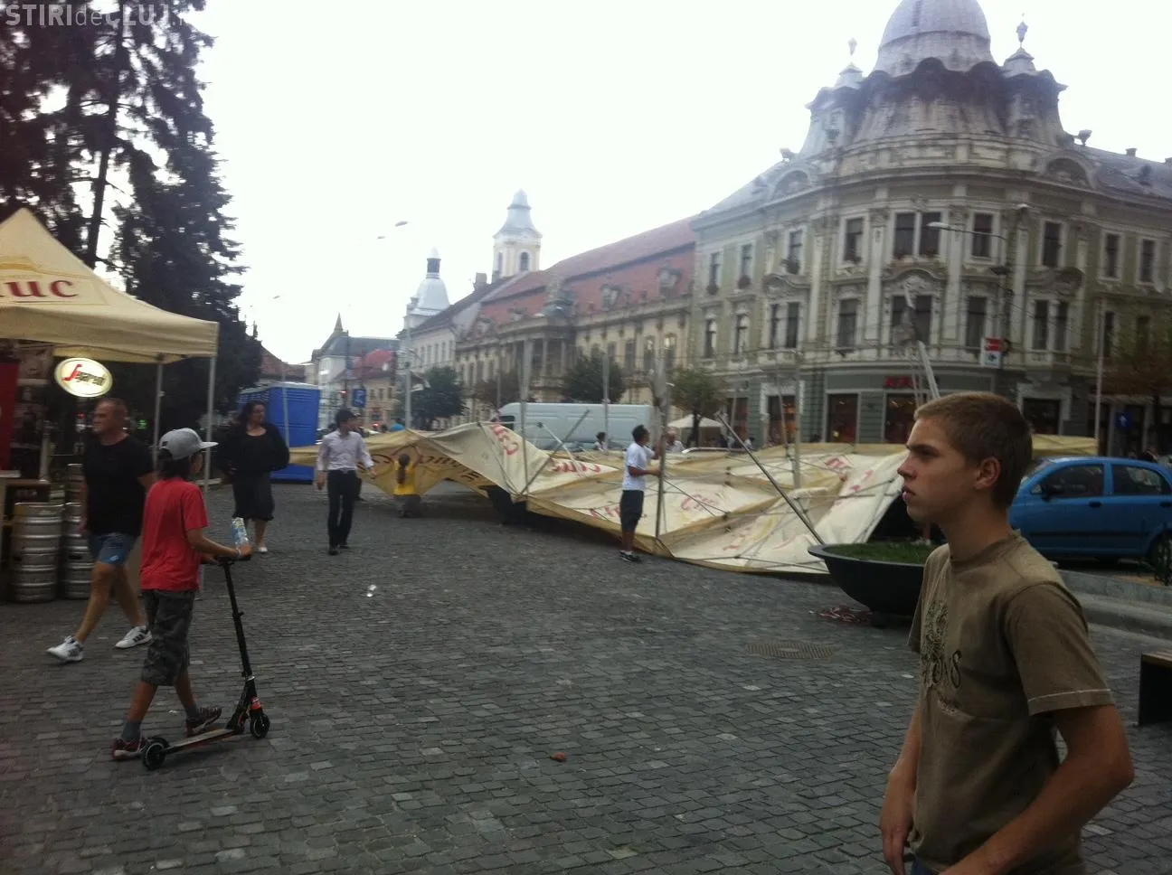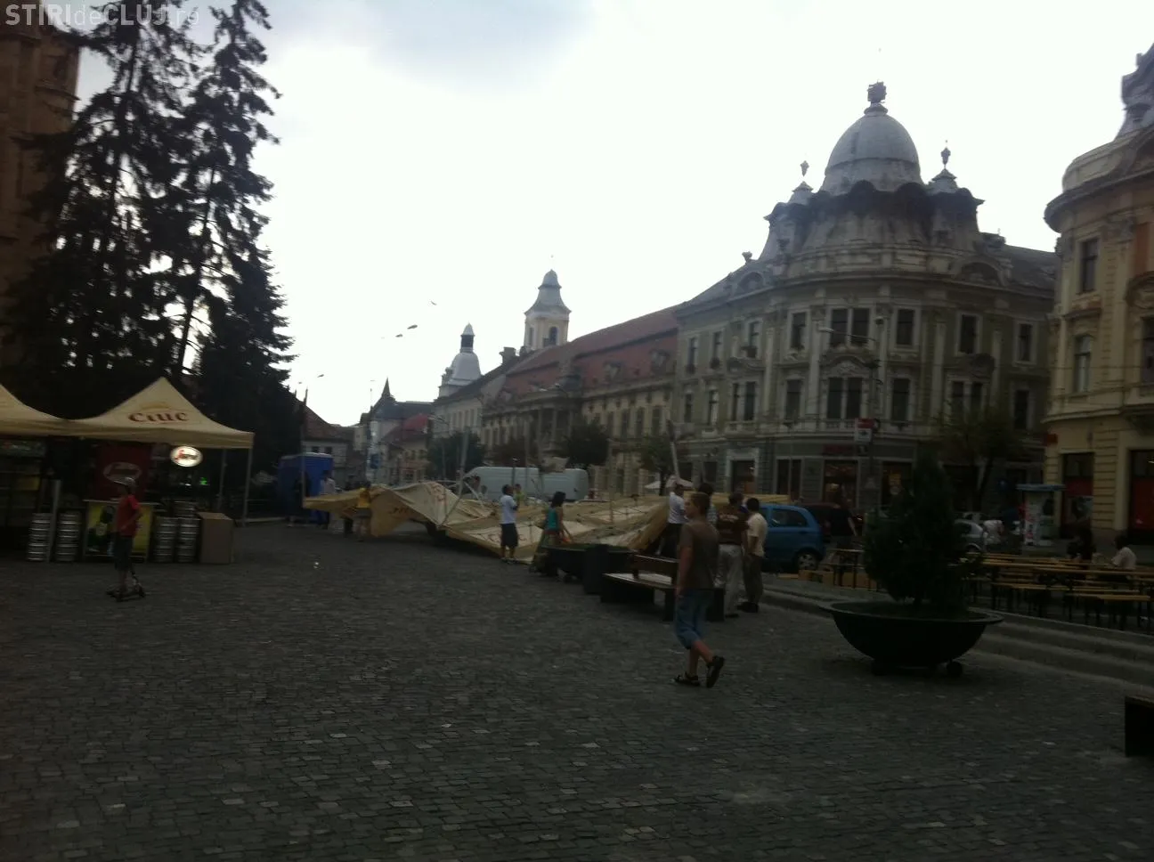 Vijelie la Cluj-Napoca! Corturile din Piața Unirii au fost luate pe sus - FOTO și VIDEO