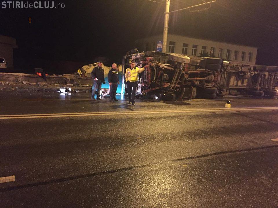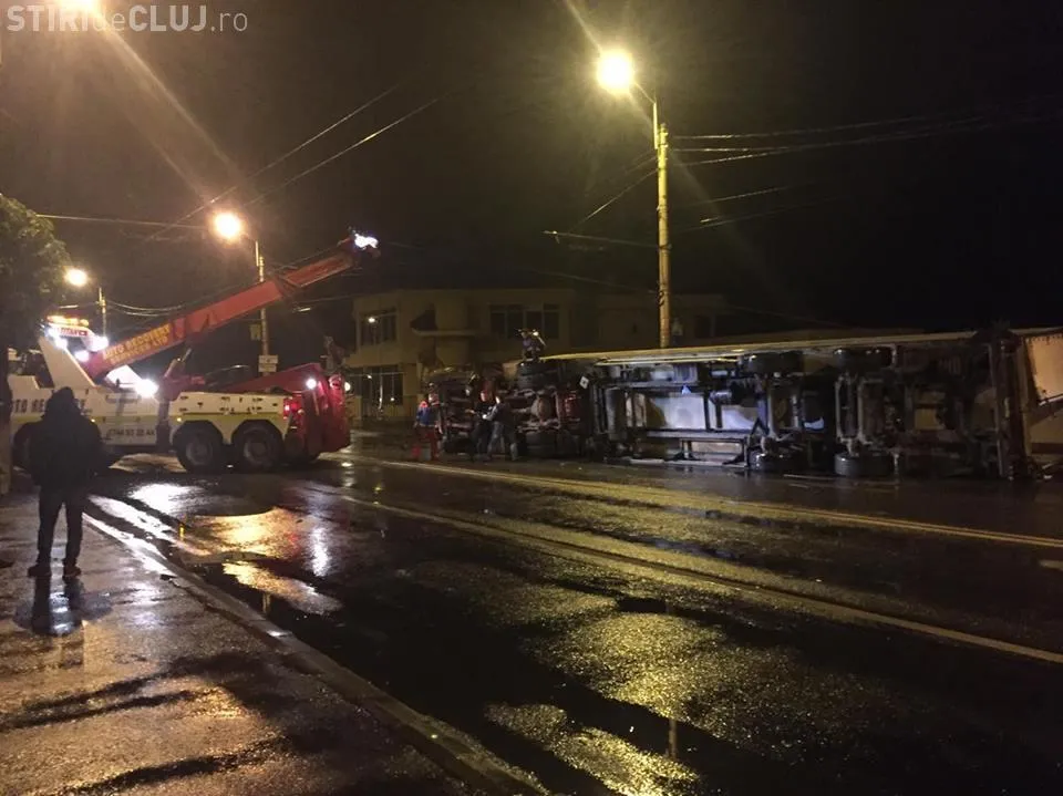 Viteza și condițiile meteo le dau mari bătăi de cap șoferilor la Cluj. Un TIR s-a răsturnat pe podul de la IRA FOTO/VIDEO
