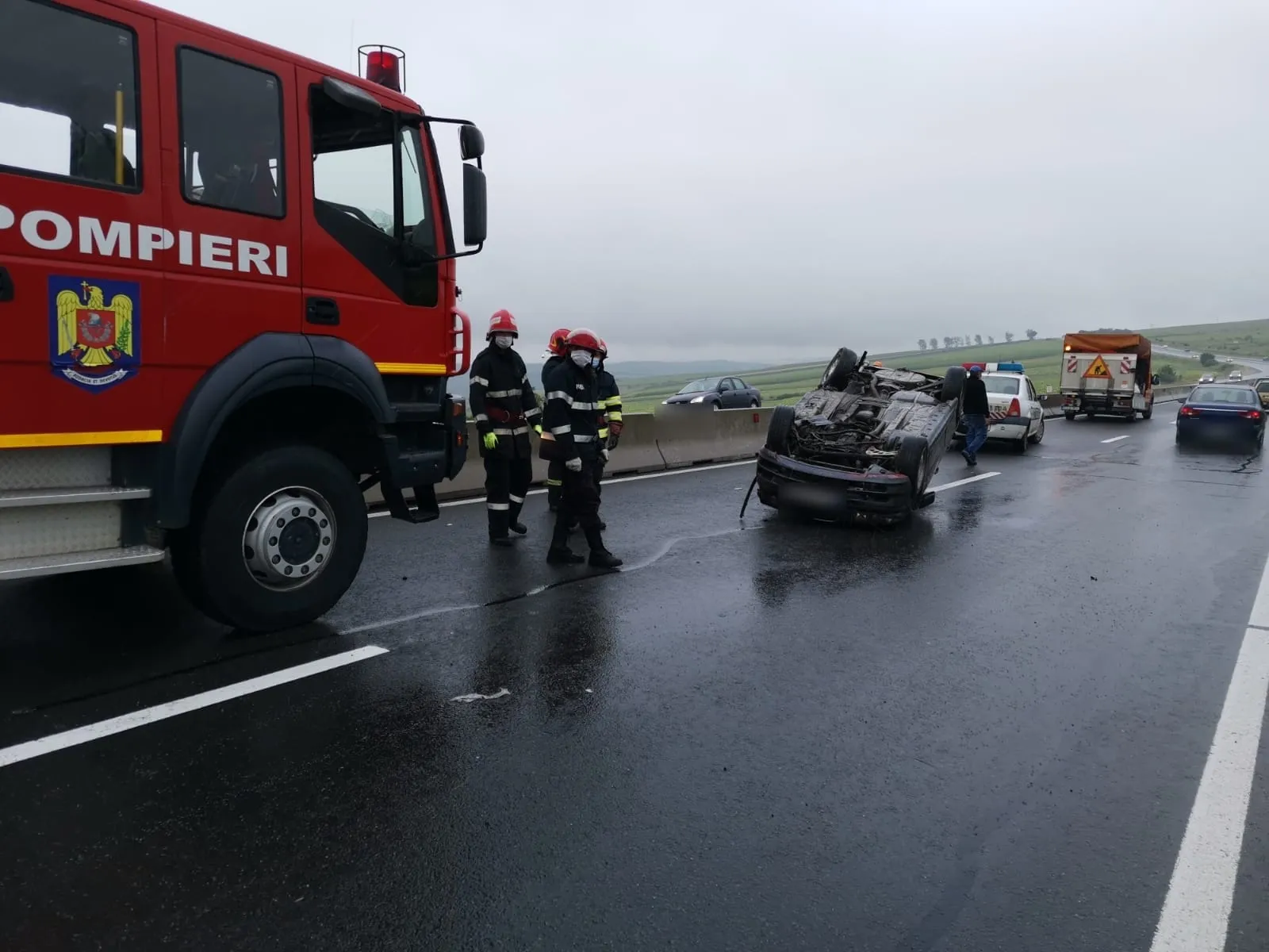 În momentul sosirii pompierilor la locul accidentului ocupanții erau ieșiți din acesta.