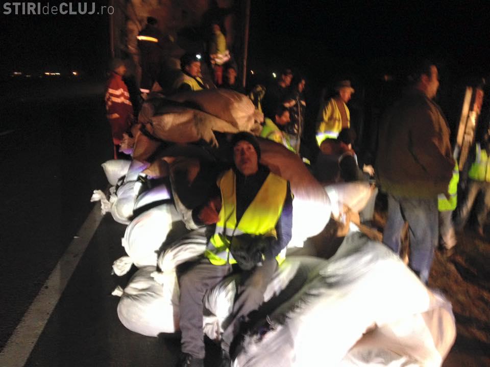 Voluntarii clujeni au mutat sacii cu haine din TIR -ul răsturnat pe DN 1 - FOTO