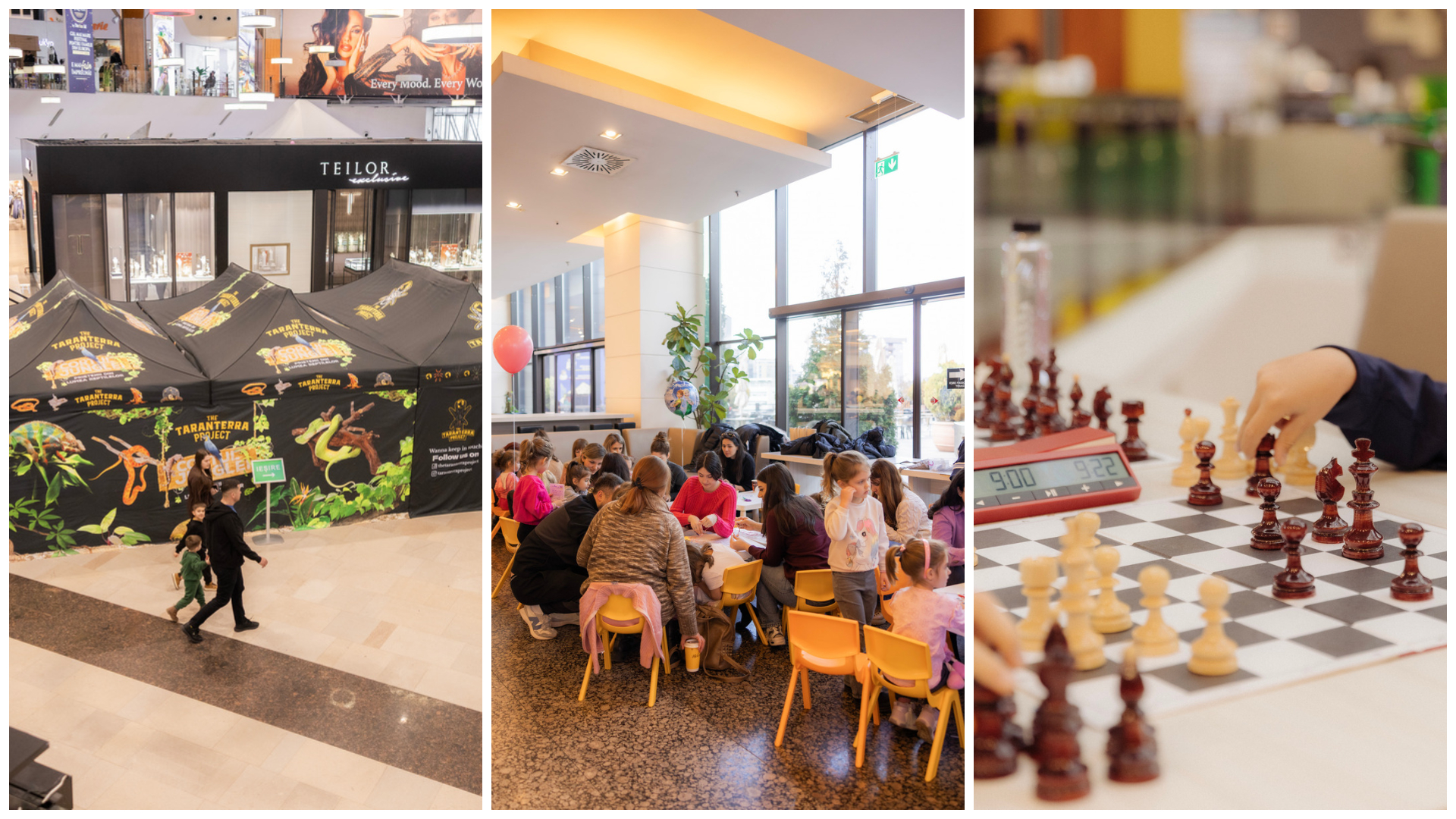 Weekend de distracție și creativitate la Iulius Mall Cluj: Copii joacă șah, creează buchete florale și descoperă tarantule și reptile vii