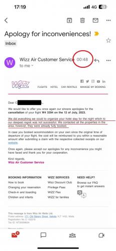 Am ajuns în Aeroport și nimeni de la Wizz Air nu a venit să ne spună ceva. Nu am avut taximetre să plecăm spre un hotel.