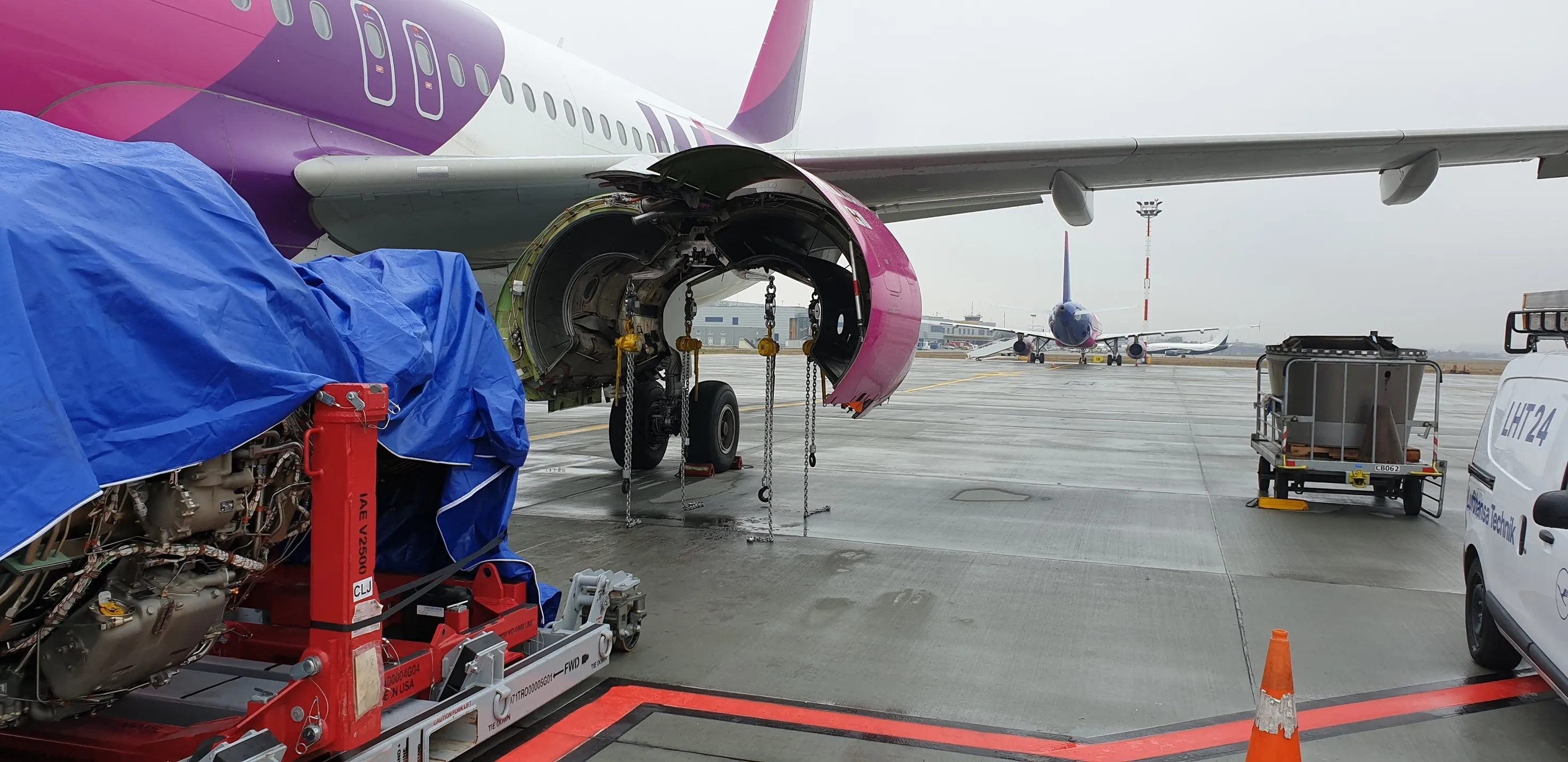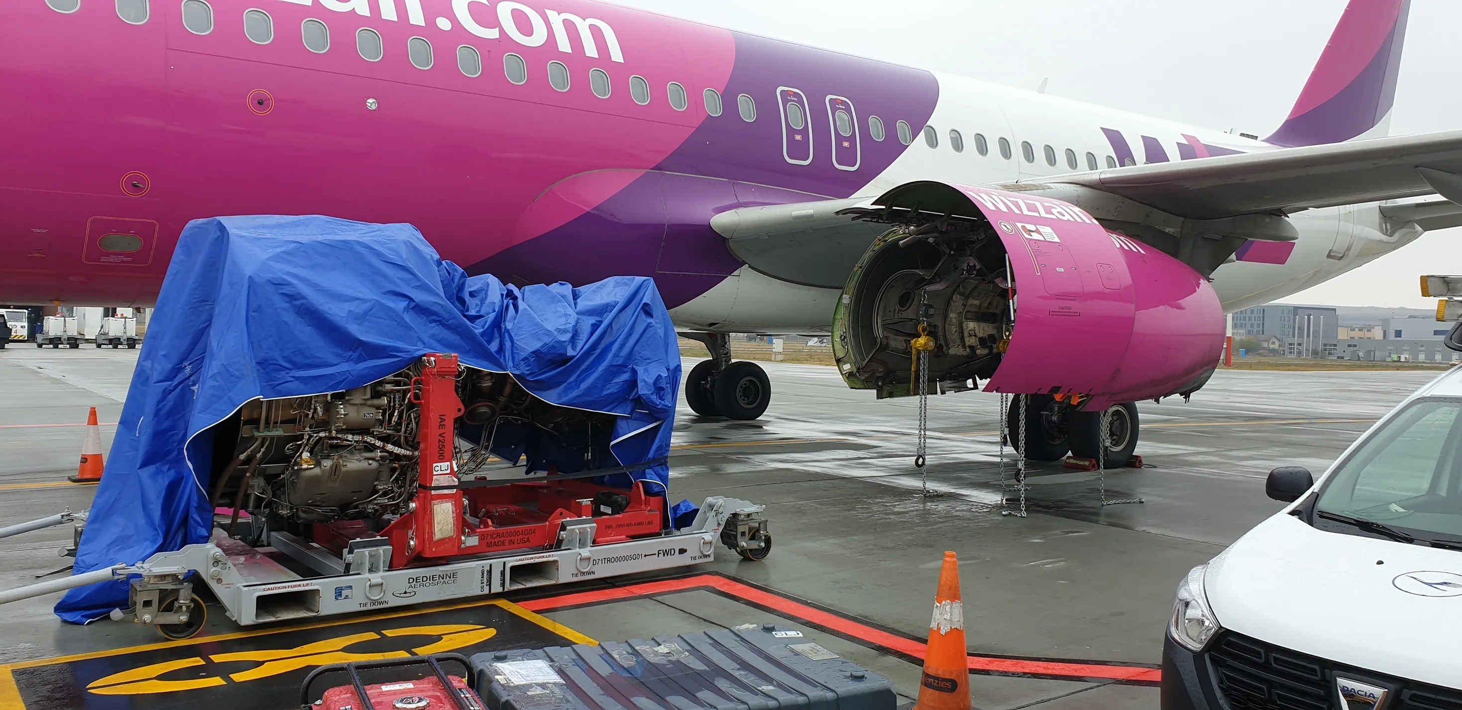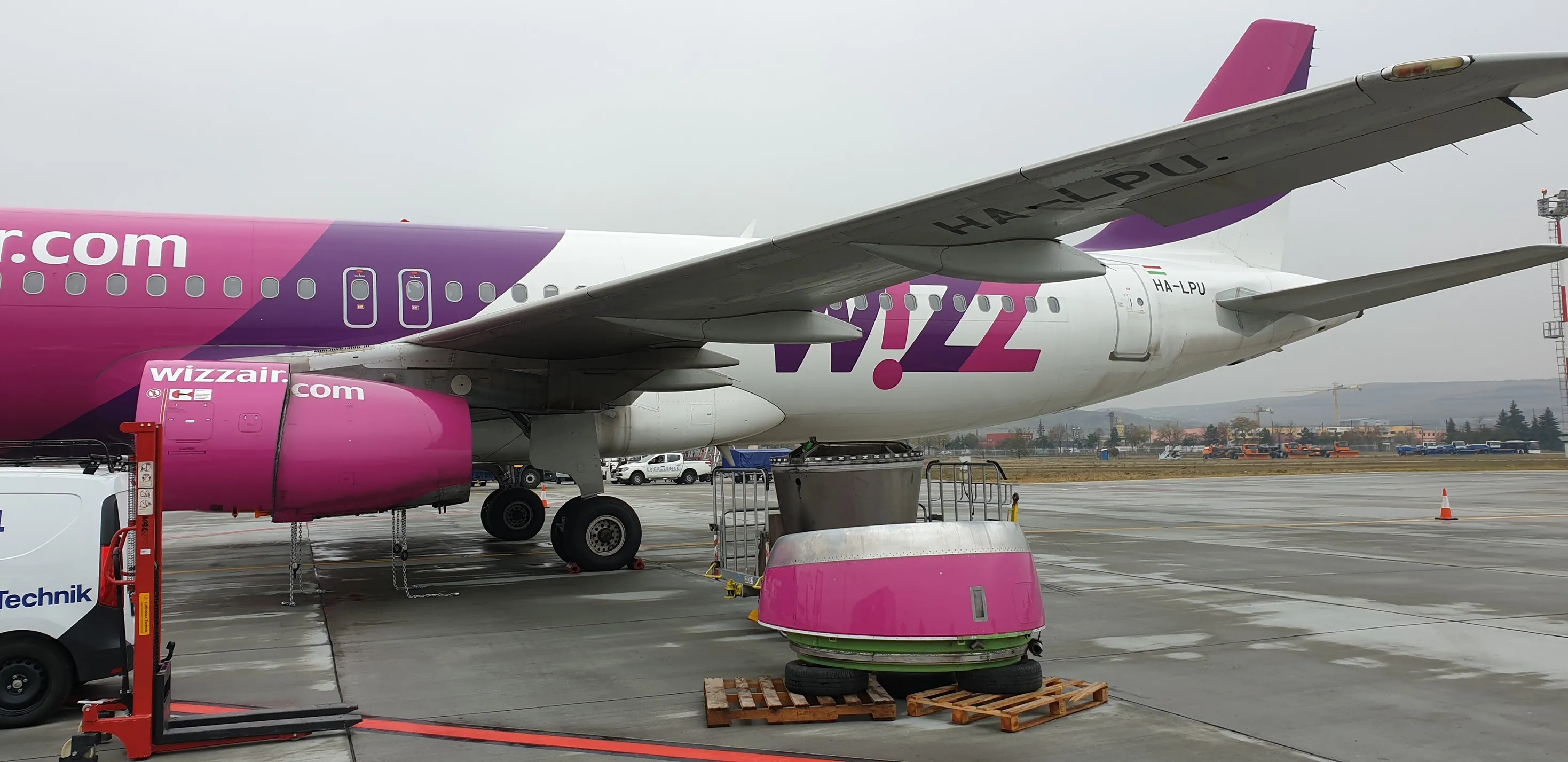 Wizz Air schimbă motorul unui avion chiar pe pista de la Cluj - FOTO