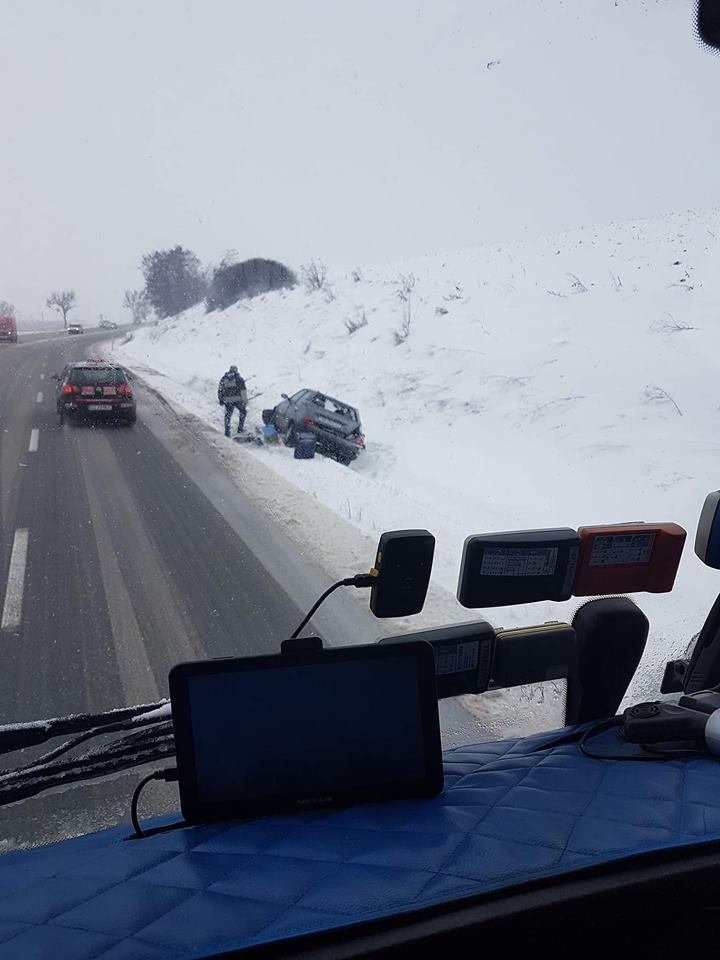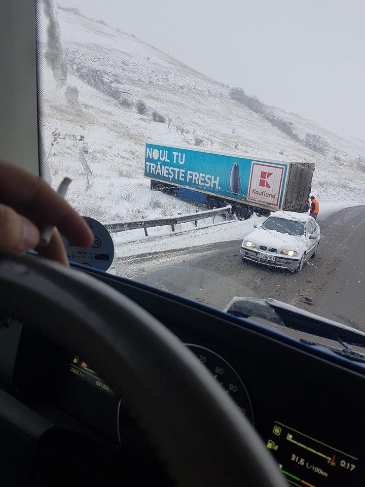 Încă de aseară au început problemele, când un TIR s-a răstrunat pe marginea drumului, pe centrura Vâlcele-Apahida. Din fericire, șoferul nu a fost rănit.