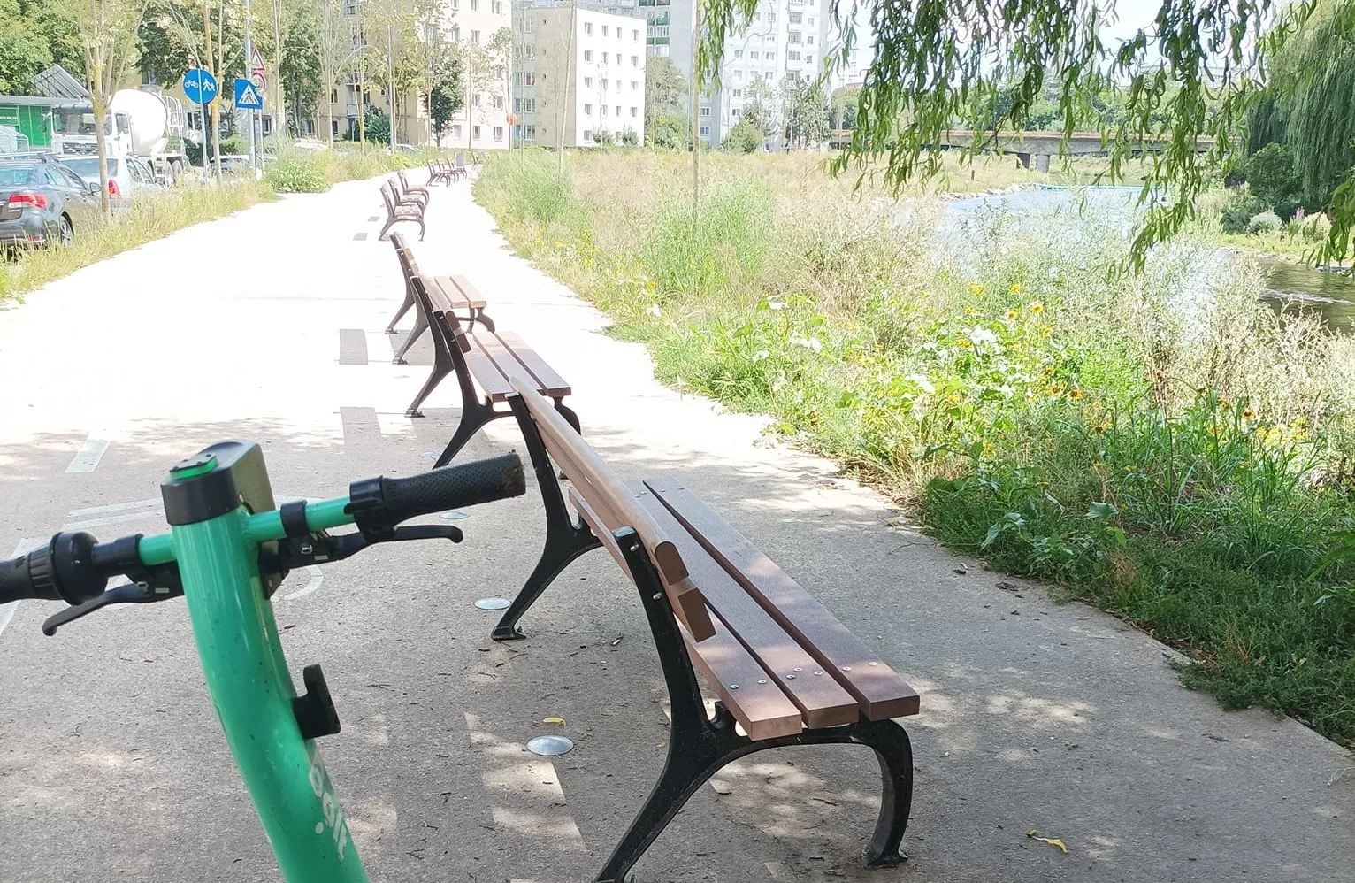 Zeci de bănci au fost aliniate pe o alee pietonală din cartierul clujean Grigorescu. Reprezentanții comunității „Someșul nostru” au relatat că băncile au fost amplasate în afara proiectului.