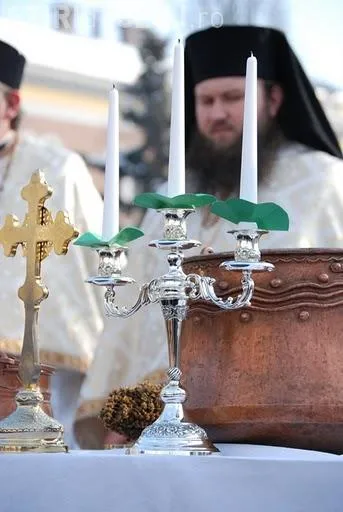 In toate bisericile ortodoxe, preotii fac apa sfintita, cu care "boteaza" apele, oamenii, animalele si casele. (Sursa Wikipedia)