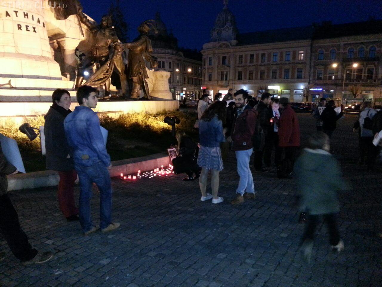 Zeci de tineri s-au strâns în centrul Clujului și au aprins lumânări în memoria studenților asasinați în Kenya FOTO