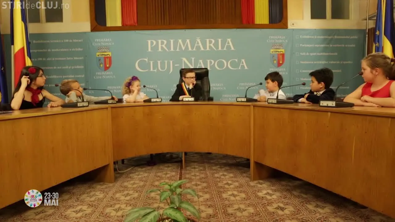Cei mici mimează o ședință de Consiliu Local, în care fiecare face lobby pentru un anumit eveniment de la Zilele Clujului.
