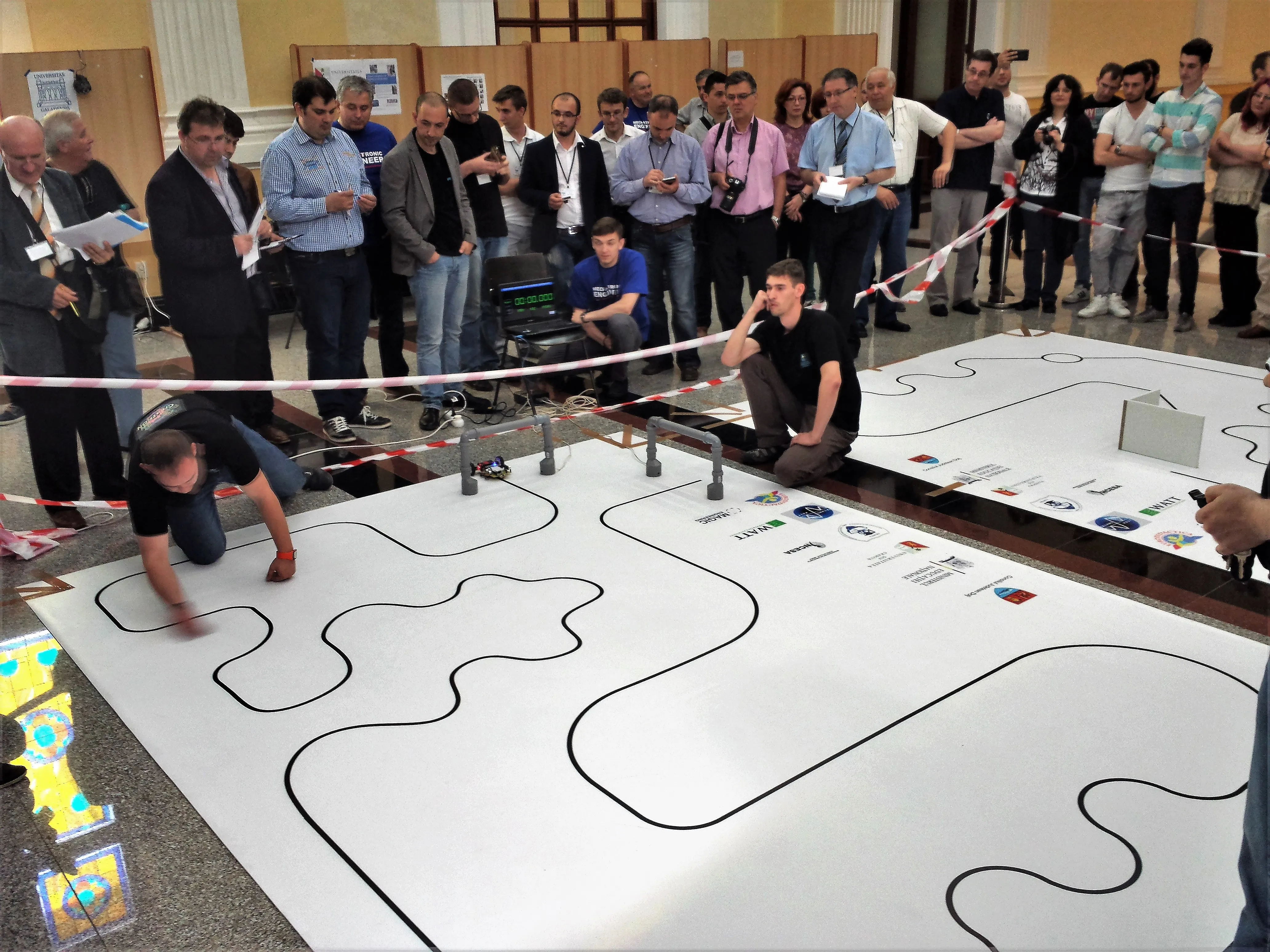 Locație: Hol-parter, Fac. ARMM | Olimpiada Națională de Mecatronică Roboți Mini Sumo