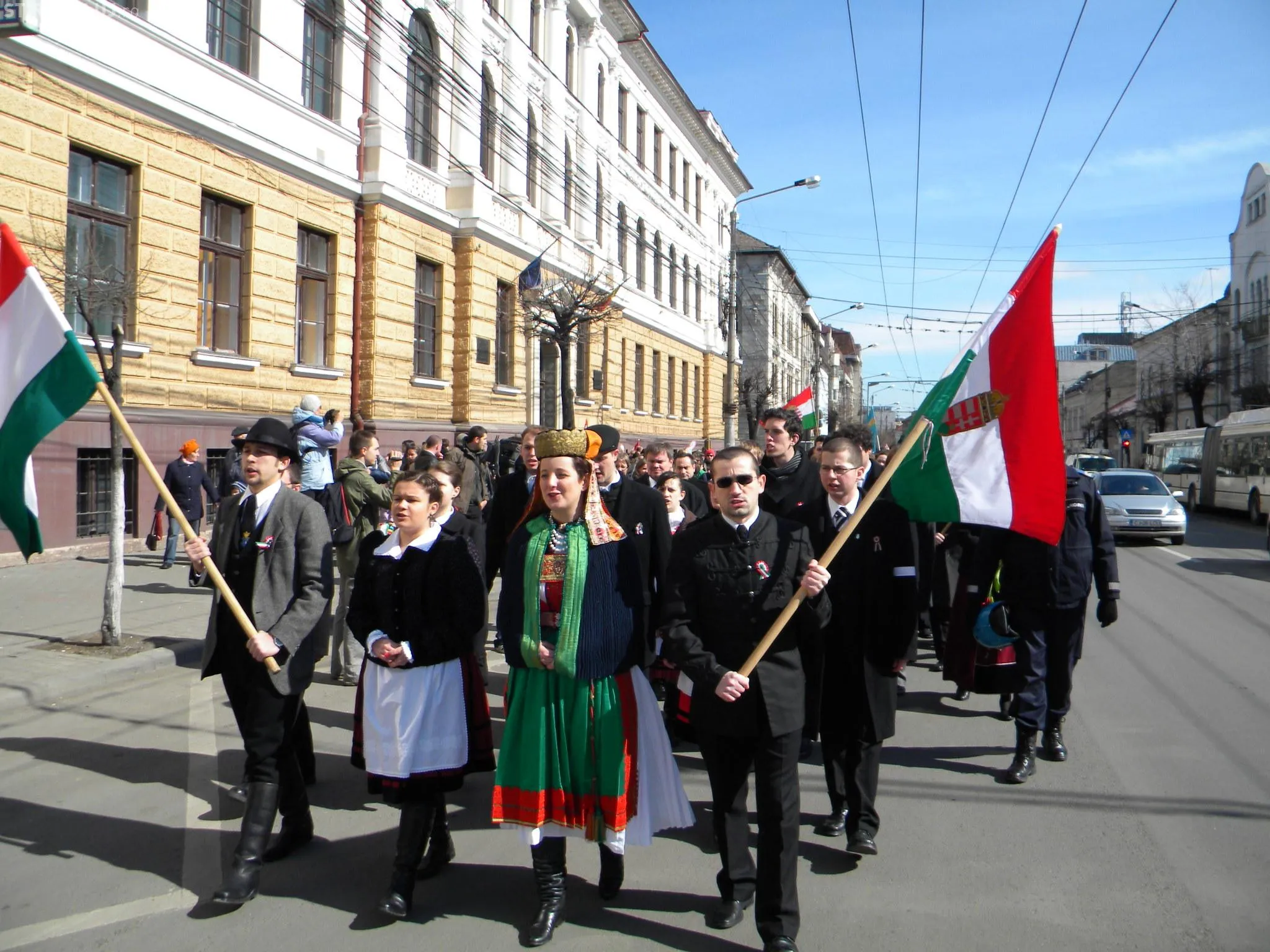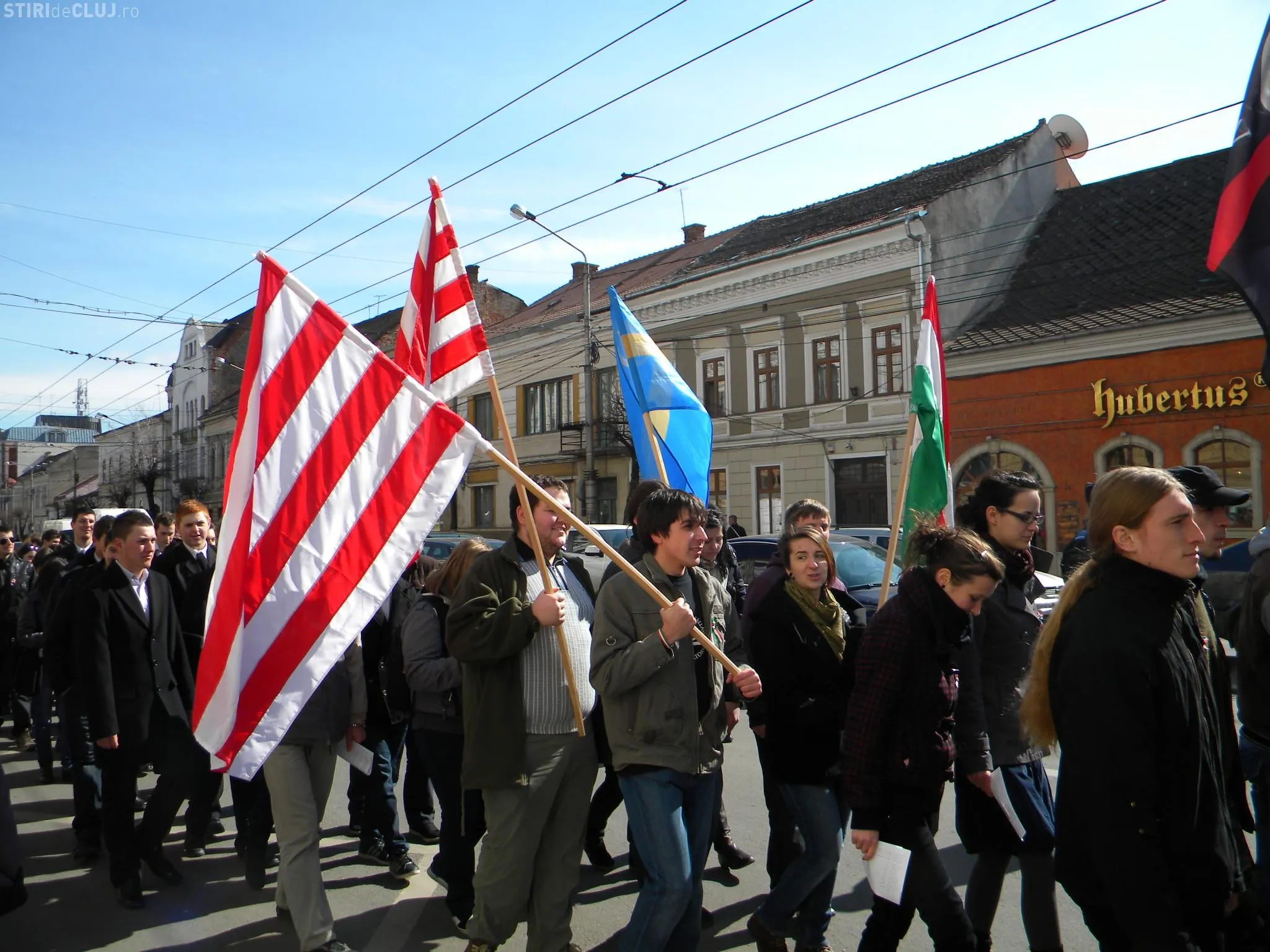 Sute de etnici maghiari au marsaluit joi dimineata pe strazile Clujului cu ocazia Zilei Maghiarilor de Pretutindeni, sarbatorita in fiecare an in 15 martie.