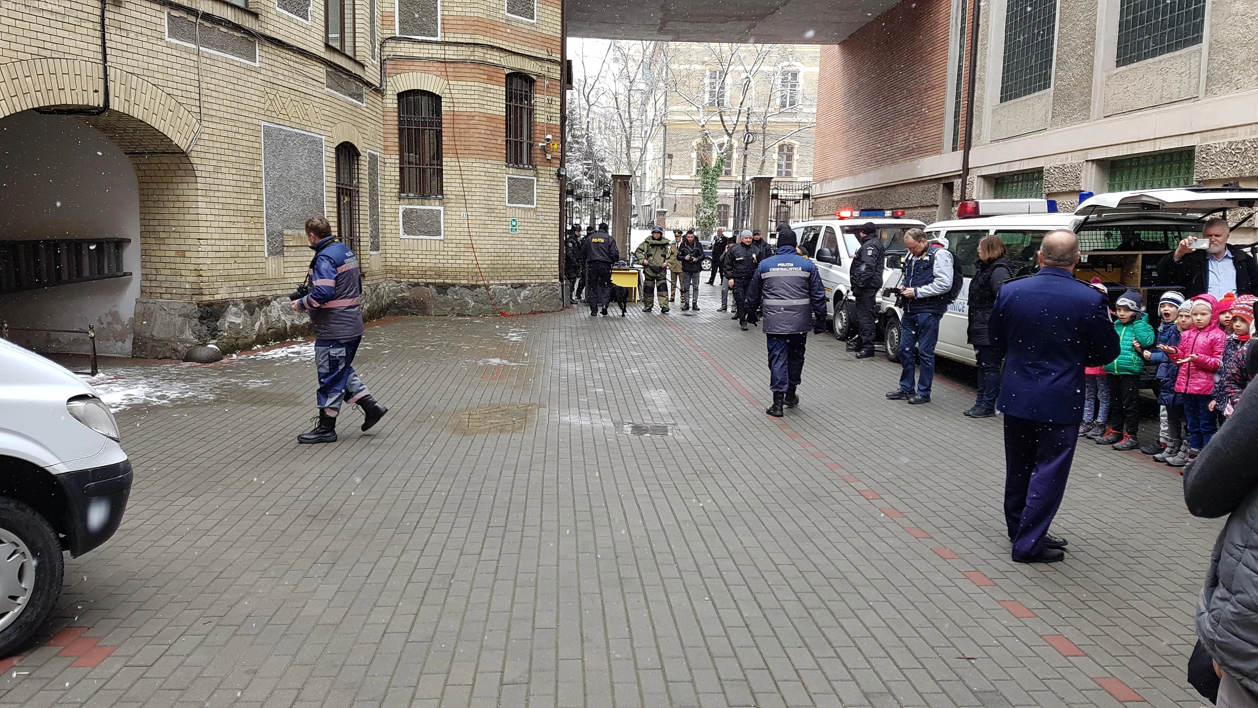 Polițiștii au coborât în rapel de la ultimul etaj al Bibliotecii, spre deliciul celor mici adunați să îi vadă, iar pitotehniștii au detonat o bombă găsită într-o mașină. La finalul demonstrației, câinii de poliție au făcut câteva exerciții alături de partenerii lor cu care merg în misiunile speciale.