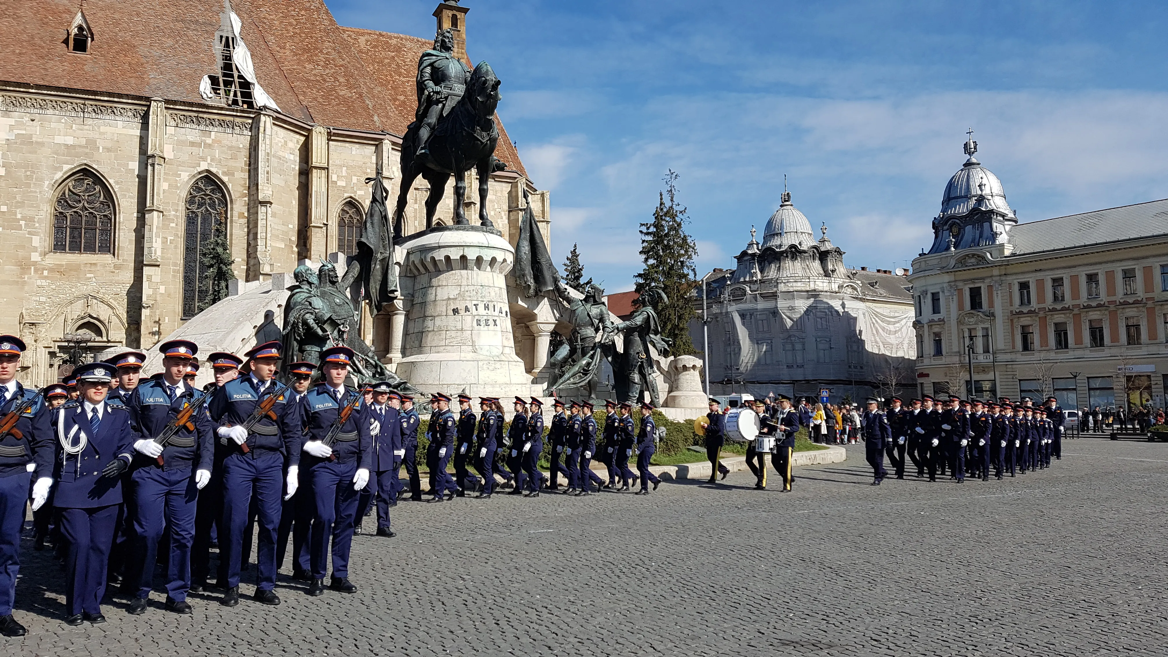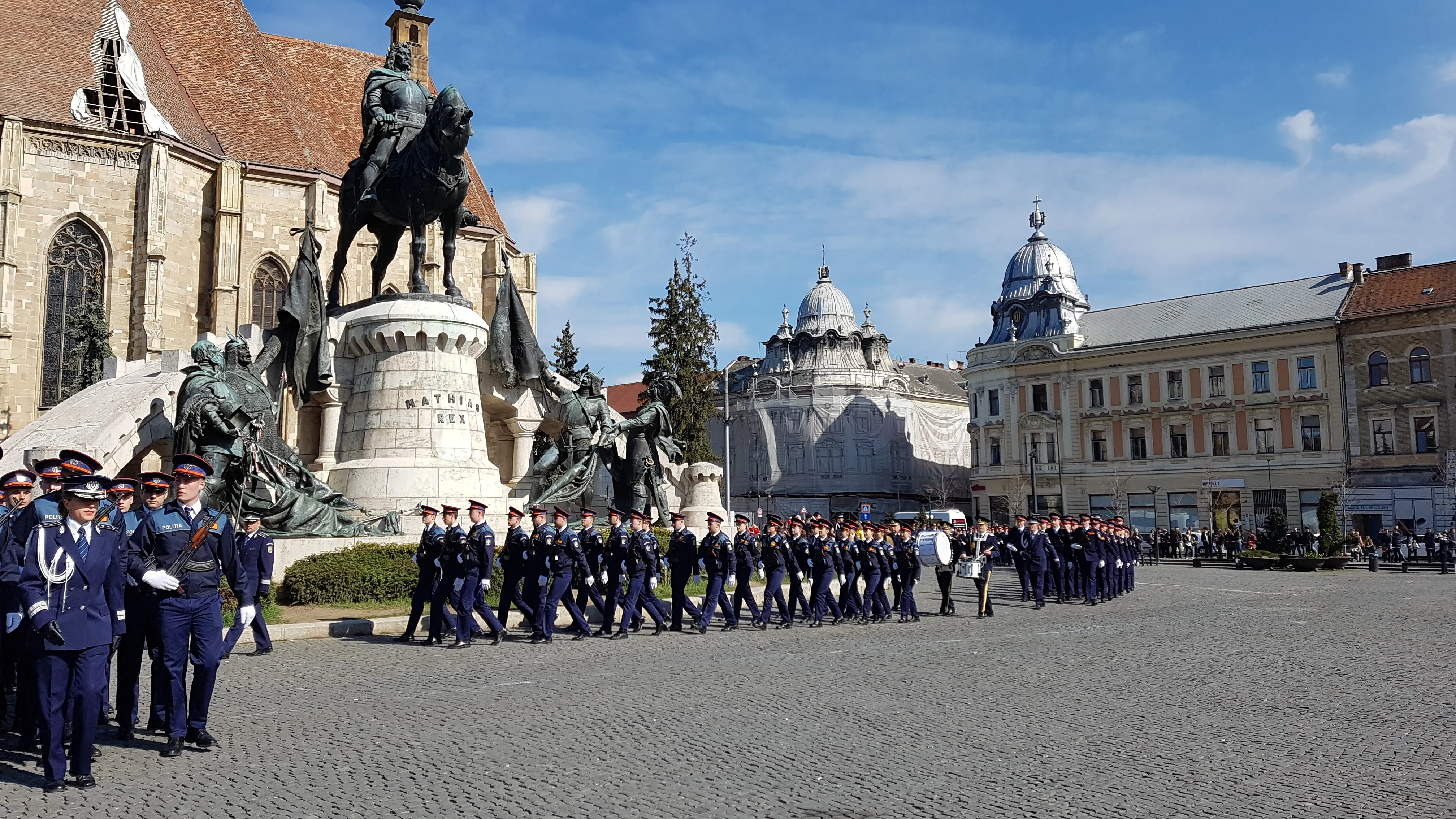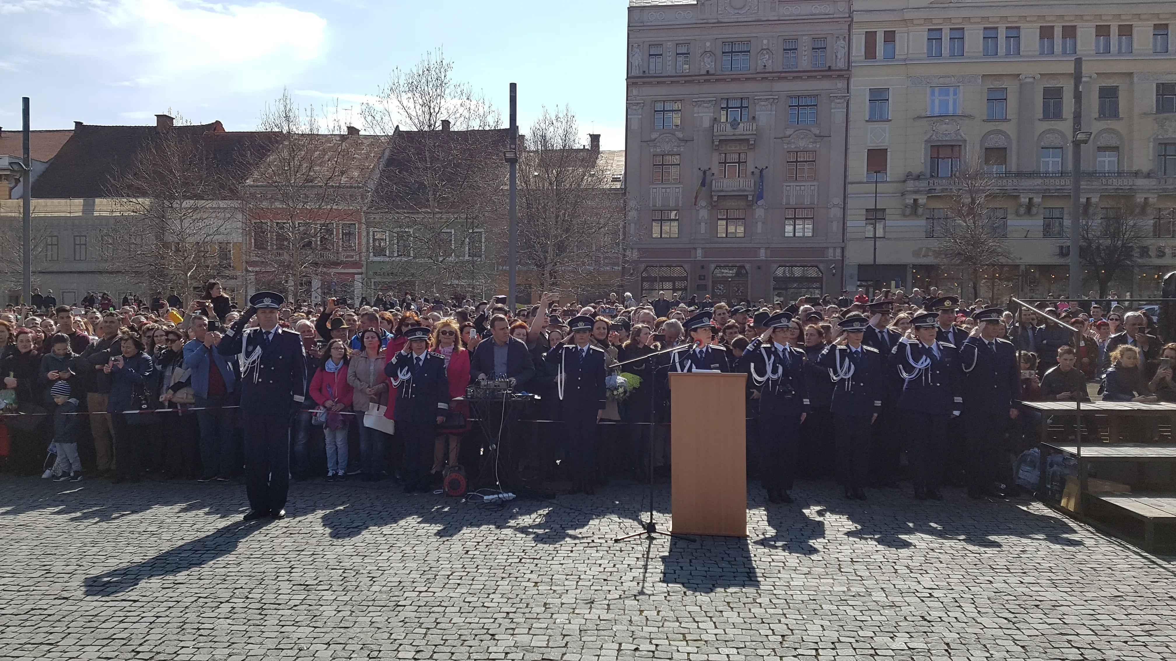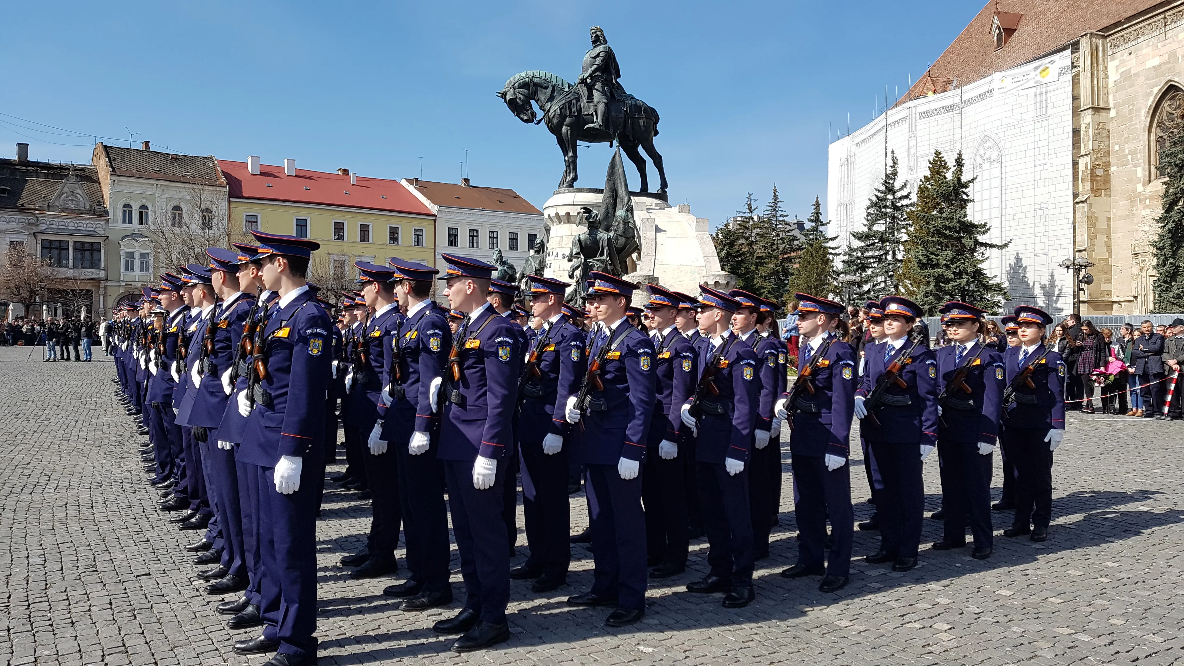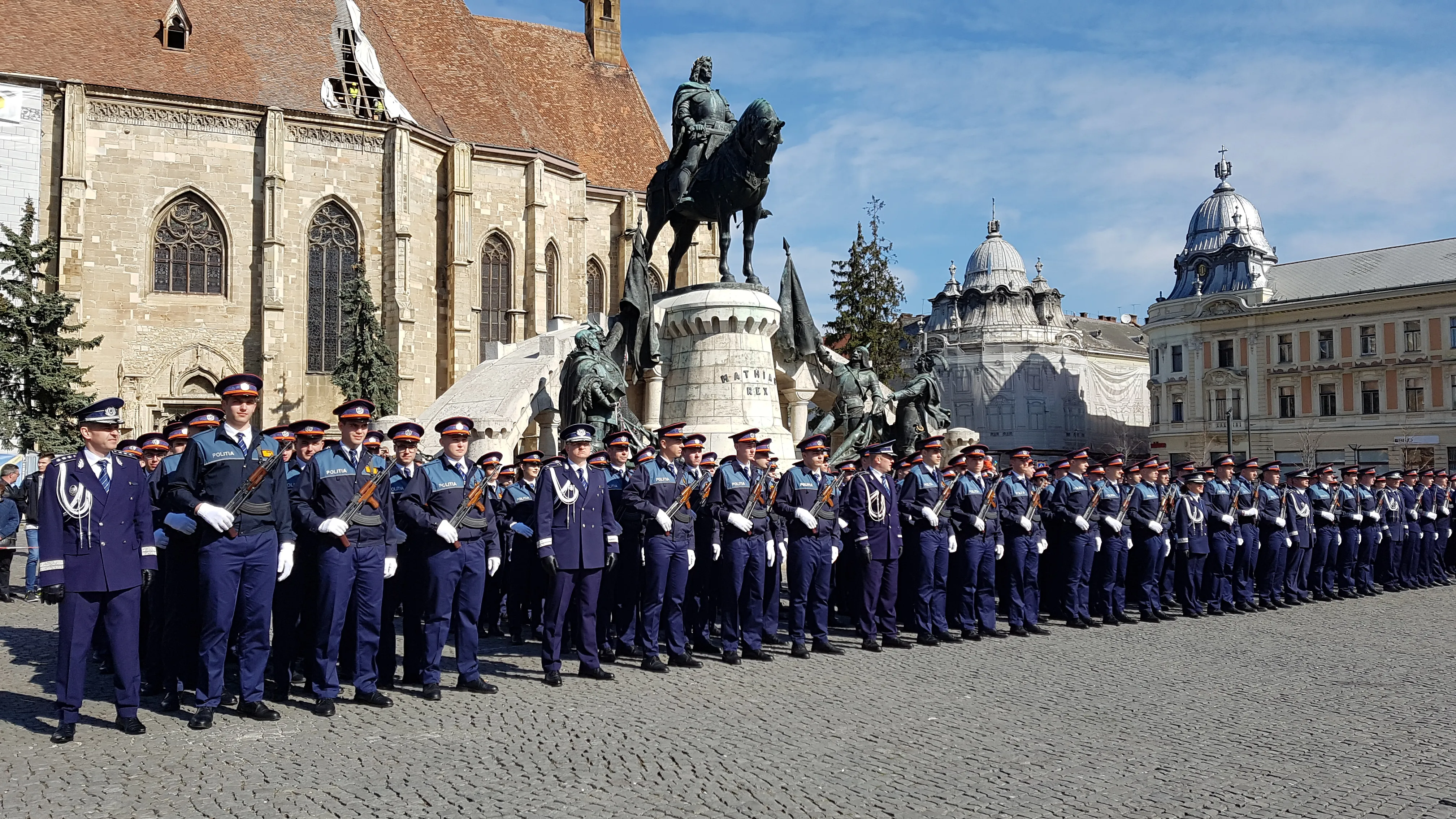 Ziua Poliției Române a fost sărbătorită la Cluj-Napoca, vineri, 22 martie, în Piața Unirii. Evenimentul a avut o ținută impecabilă și a adunat sute de persoane în zona statuii lui Matei Corvin.