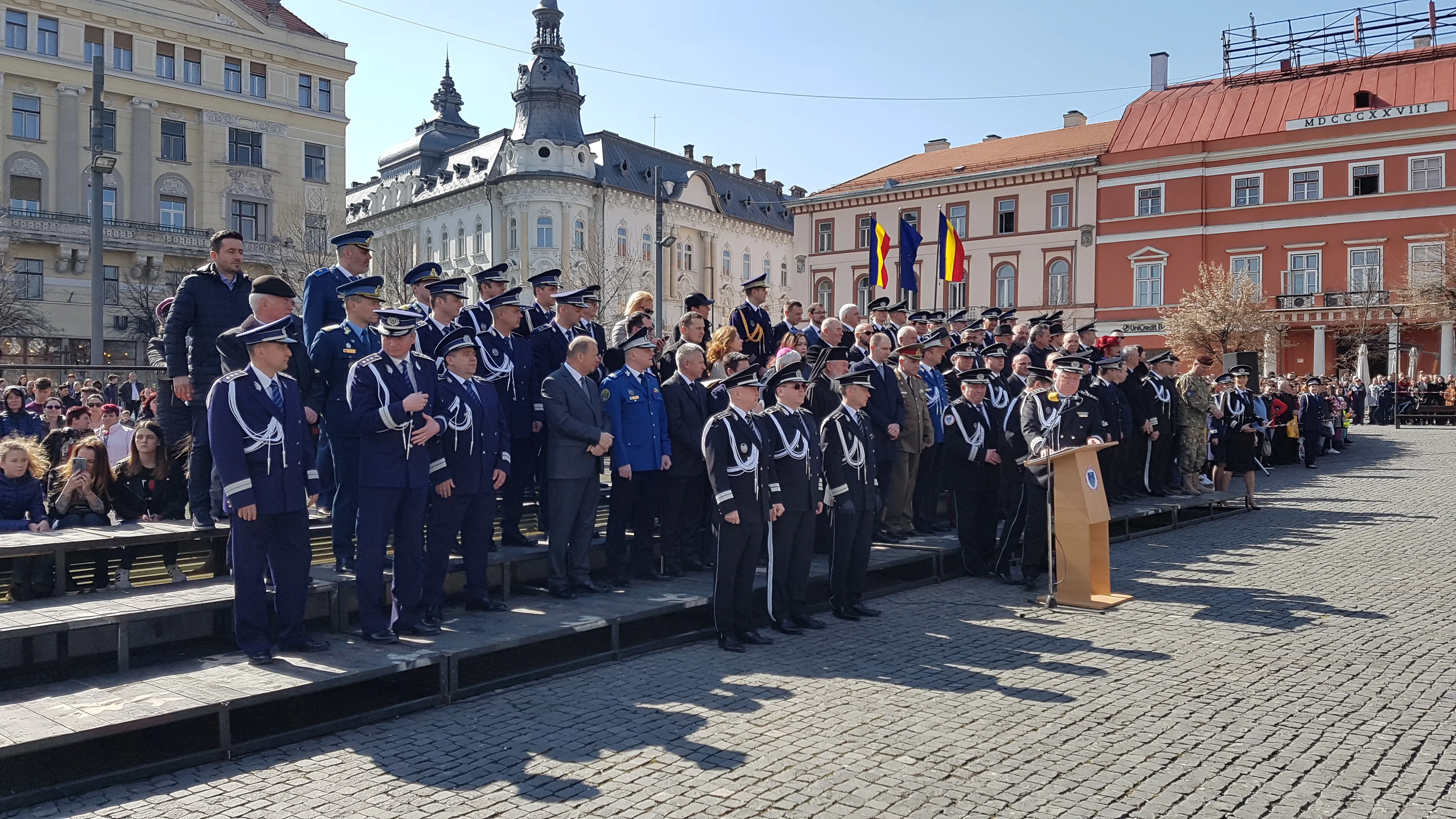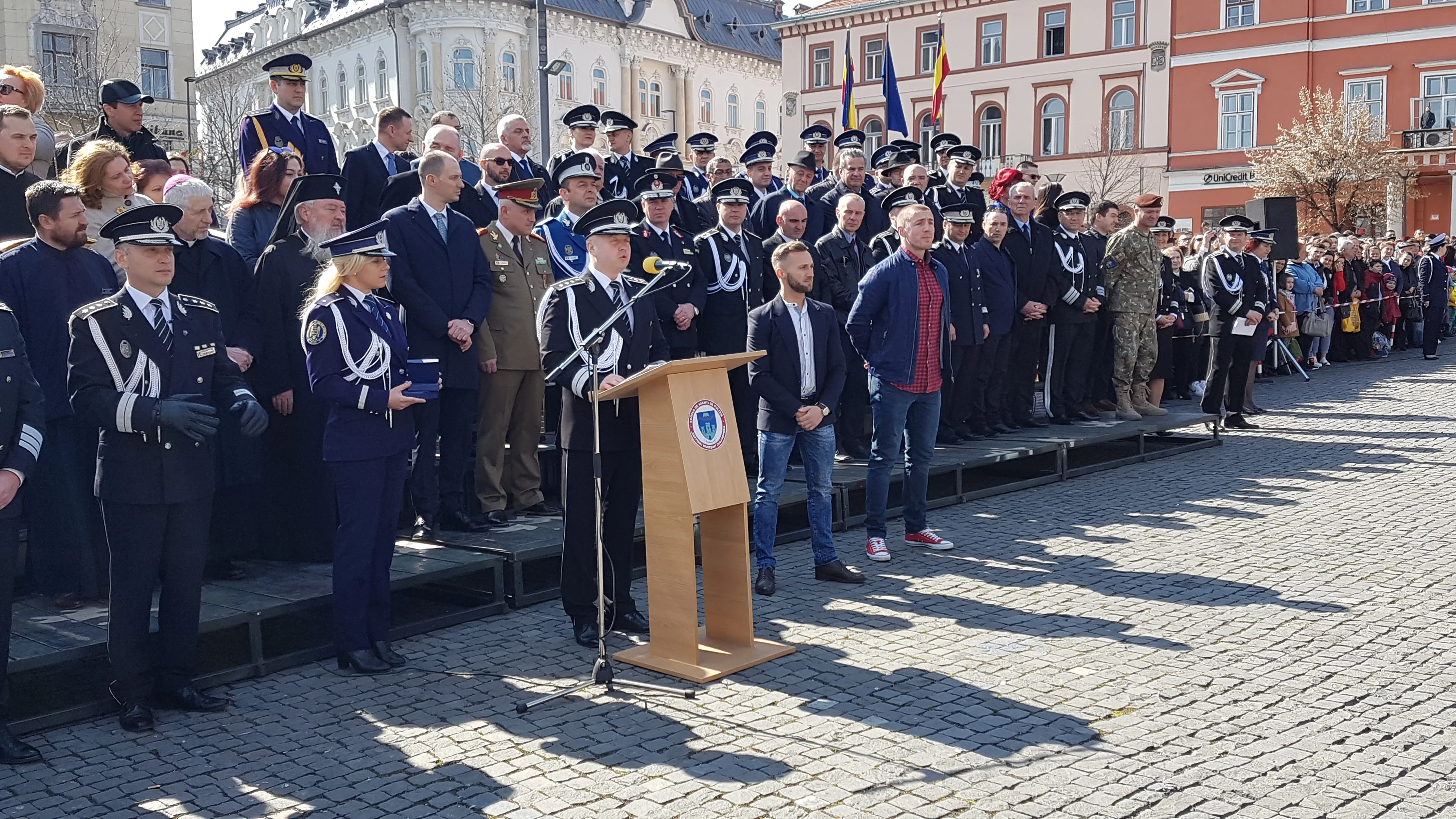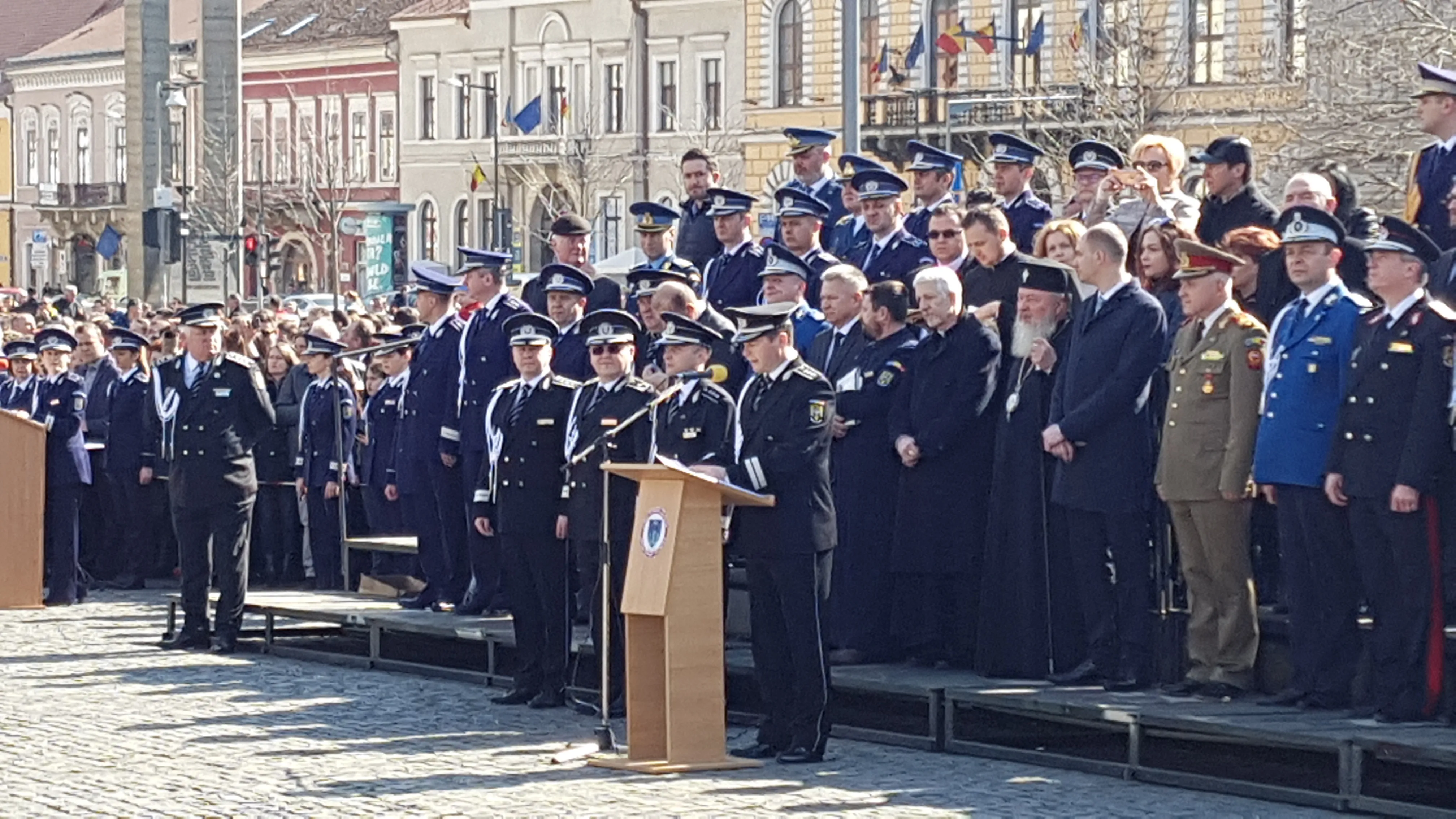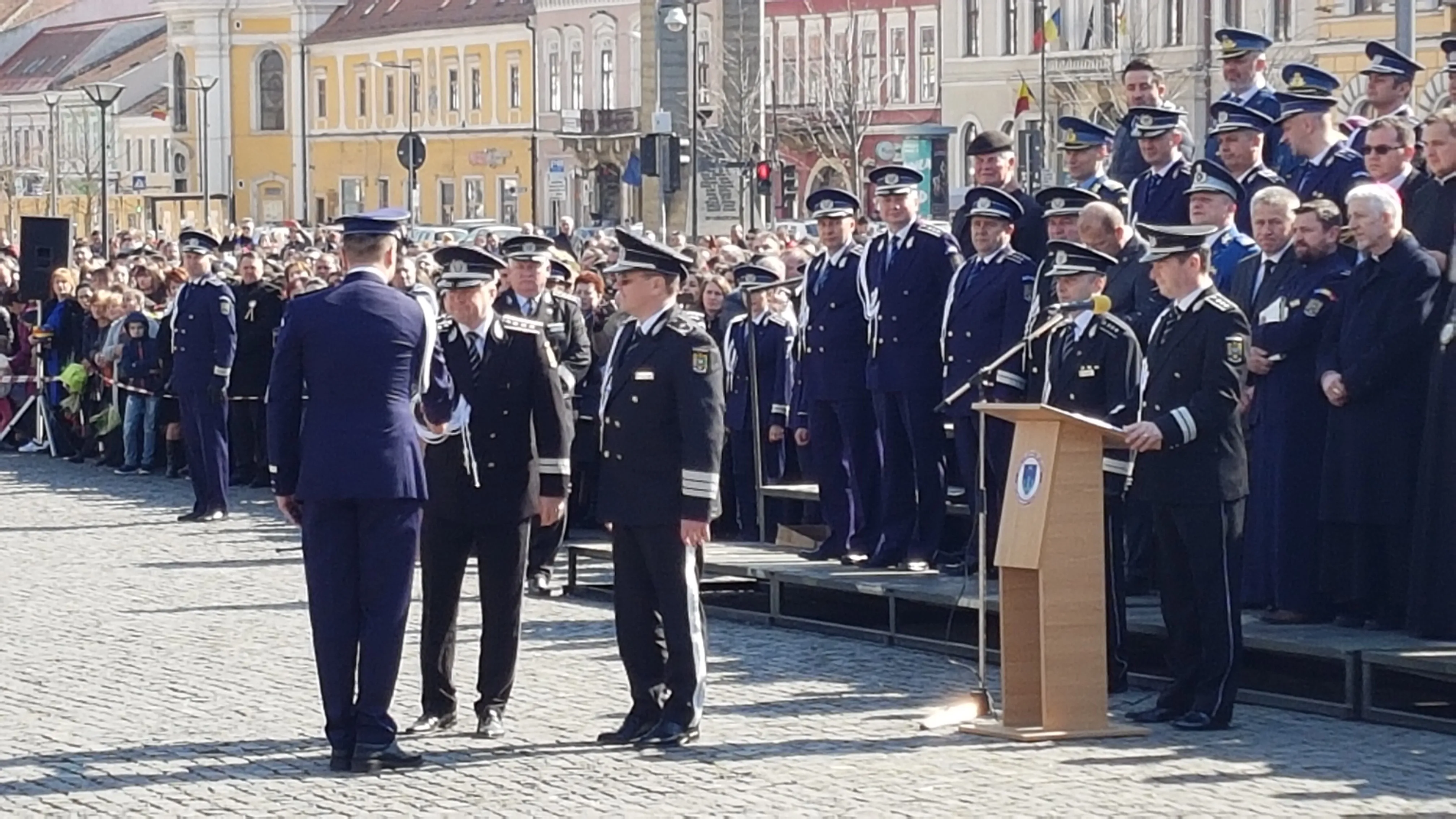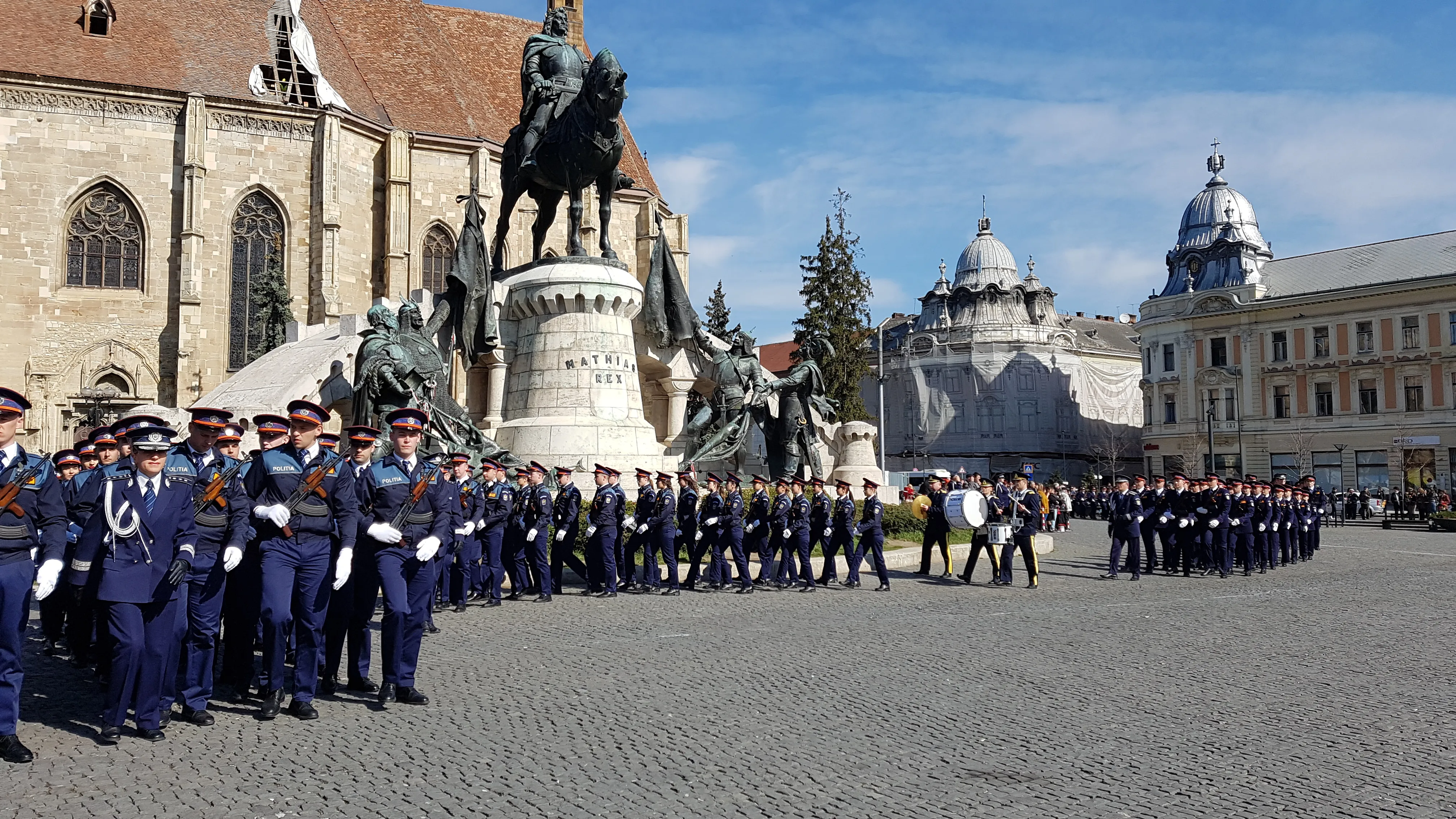 Ziua Poliției Române a fost sărbătorită la Cluj-Napoca, vineri, 22 martie, în Piața Unirii. Evenimentul a avut o ținută impecabilă și a adunat sute de persoane în zona statuii lui Matei Corvin.