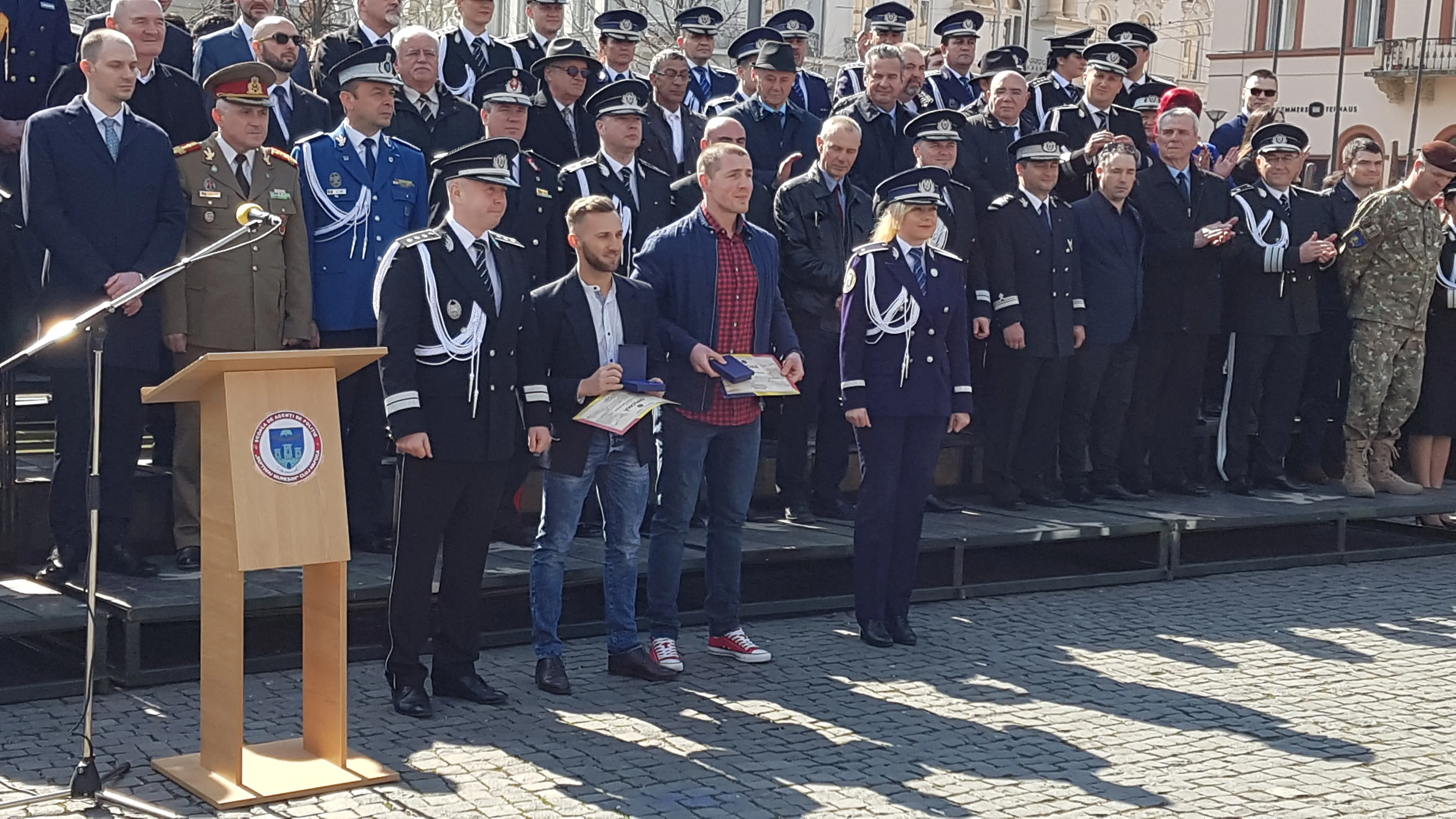 De asemenea, comisarul șef Mircea Ion Rus, șeful Inspectoratului de Poliție al Județului Cluj, a premiat doi tineri care au intervenit în acest an pentru a prinde un infractor care a atacat o femeie. Comisarul Rus le-a mulțumit celor doi și i-a dat ca exemplu pentru relația pe care poliția o are cu cetățenii.