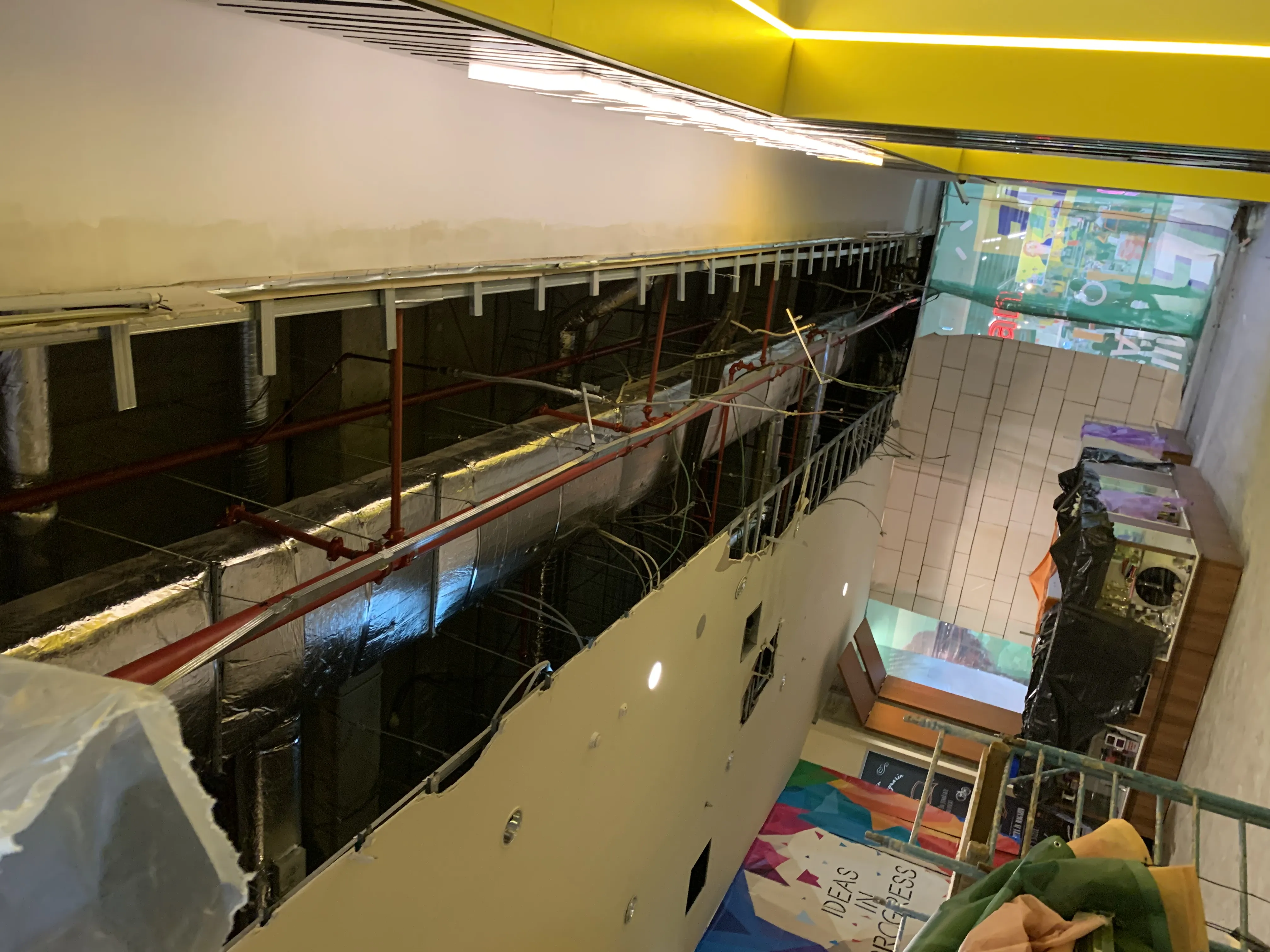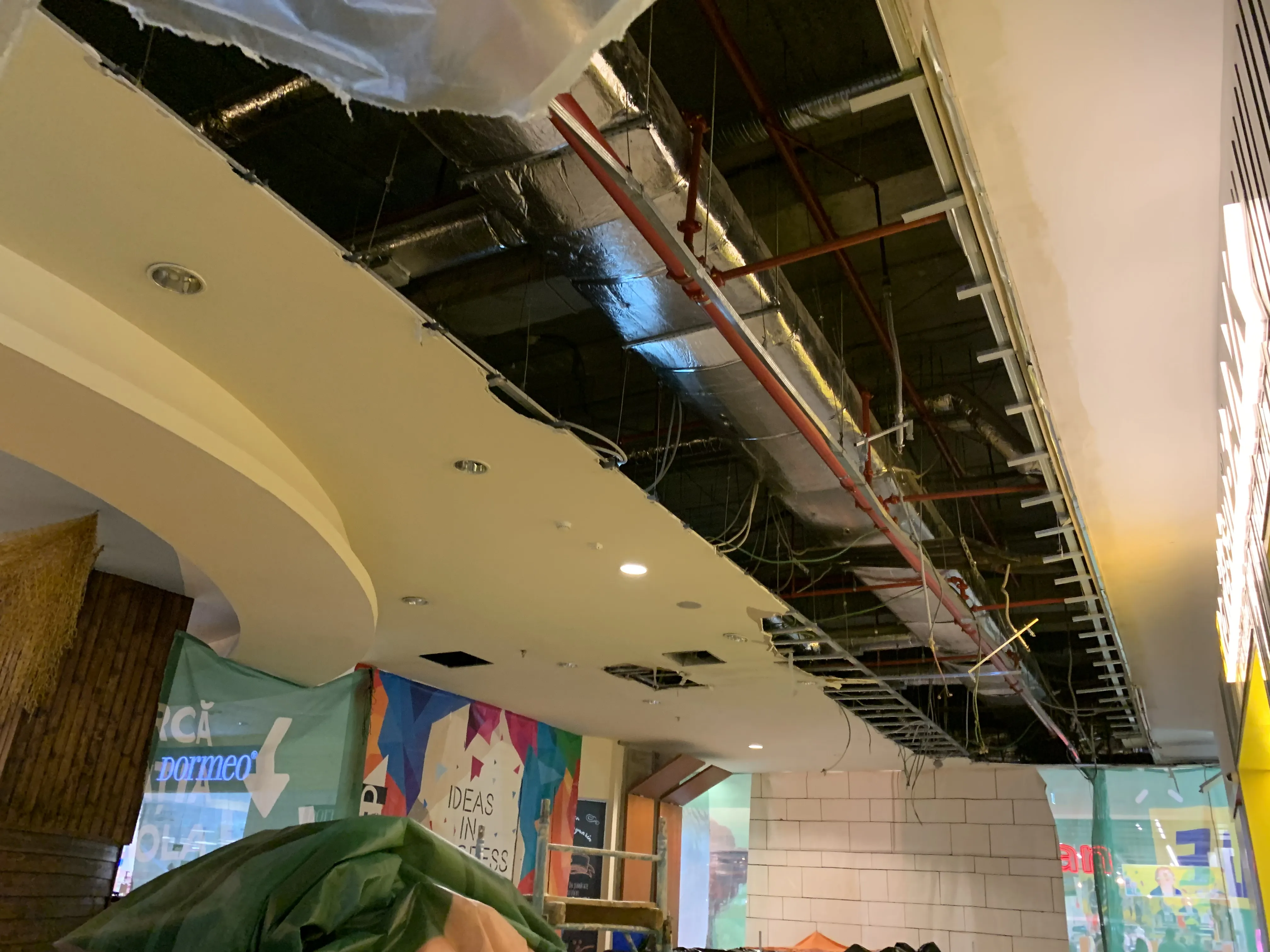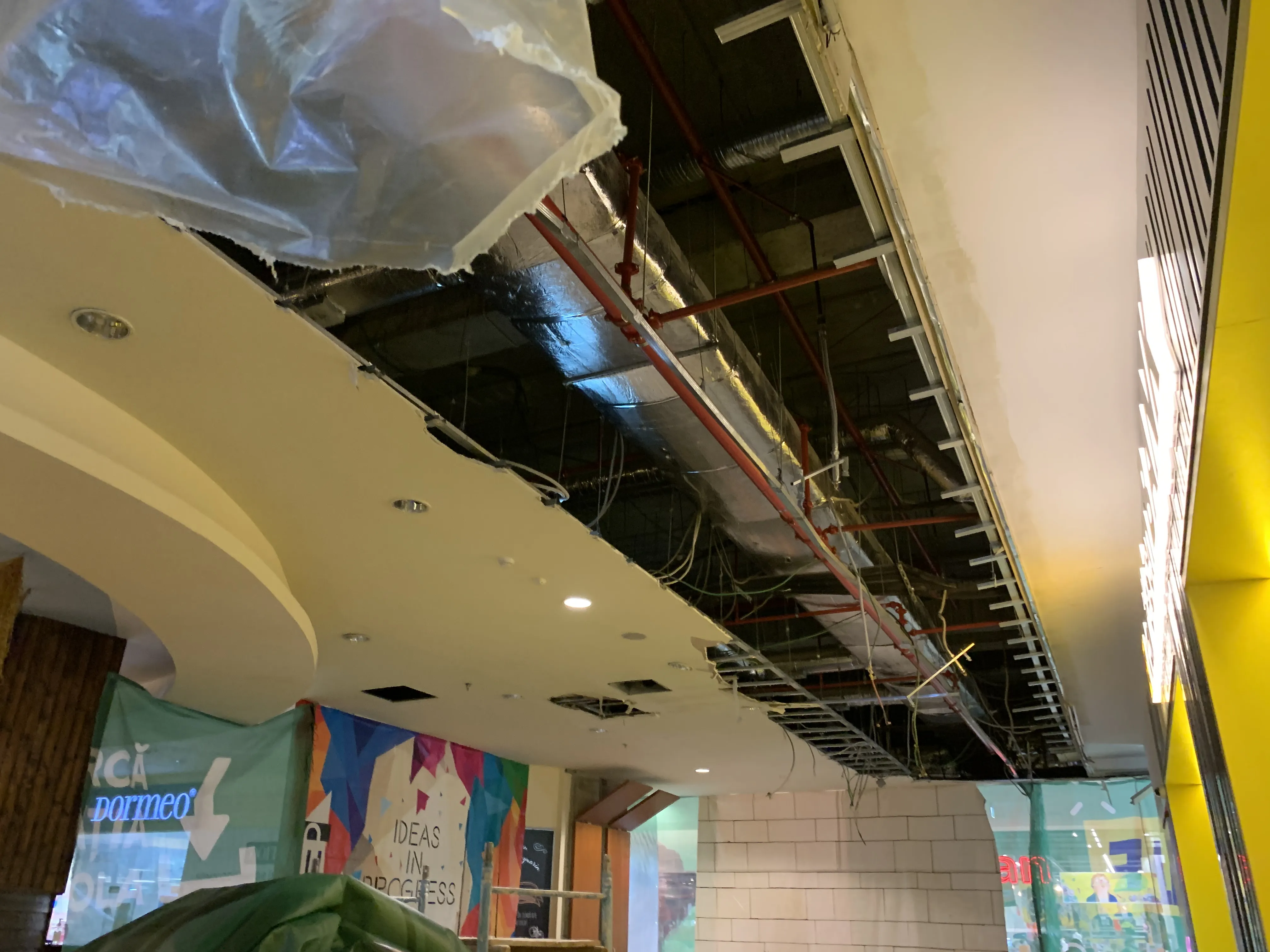 Tavanul afectat a fost îndepărtat de echipele de muncitori, urmând ca in câteva zile spațiul sa fie repus in circuitul comercial.