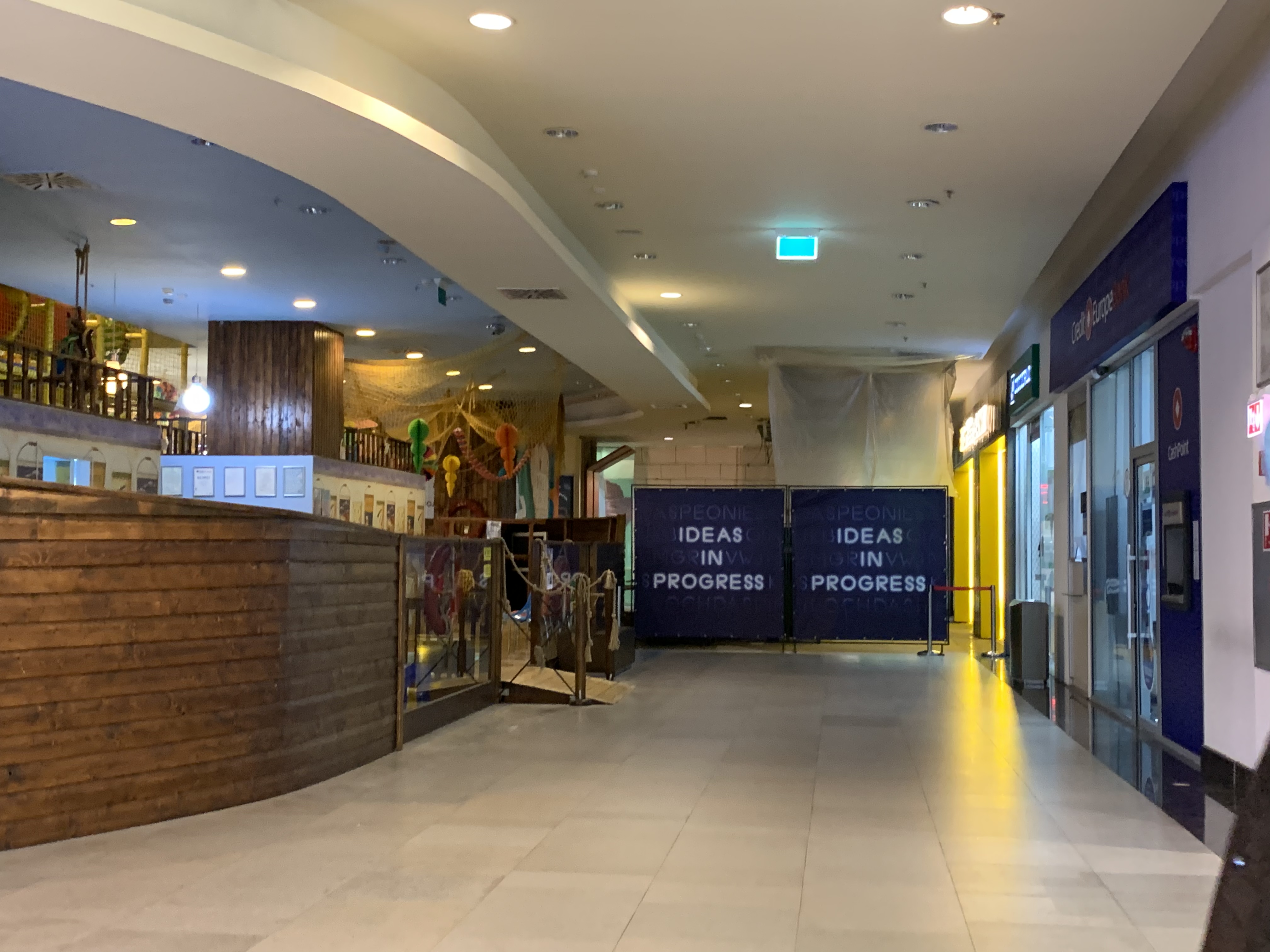 Zona unde s-a prăbușit tavanul de la Iulius Mall Cluj a fost îngrădită si securizata. Spațiul afectat este chiar lângă spațiul de joaca pentru copii.