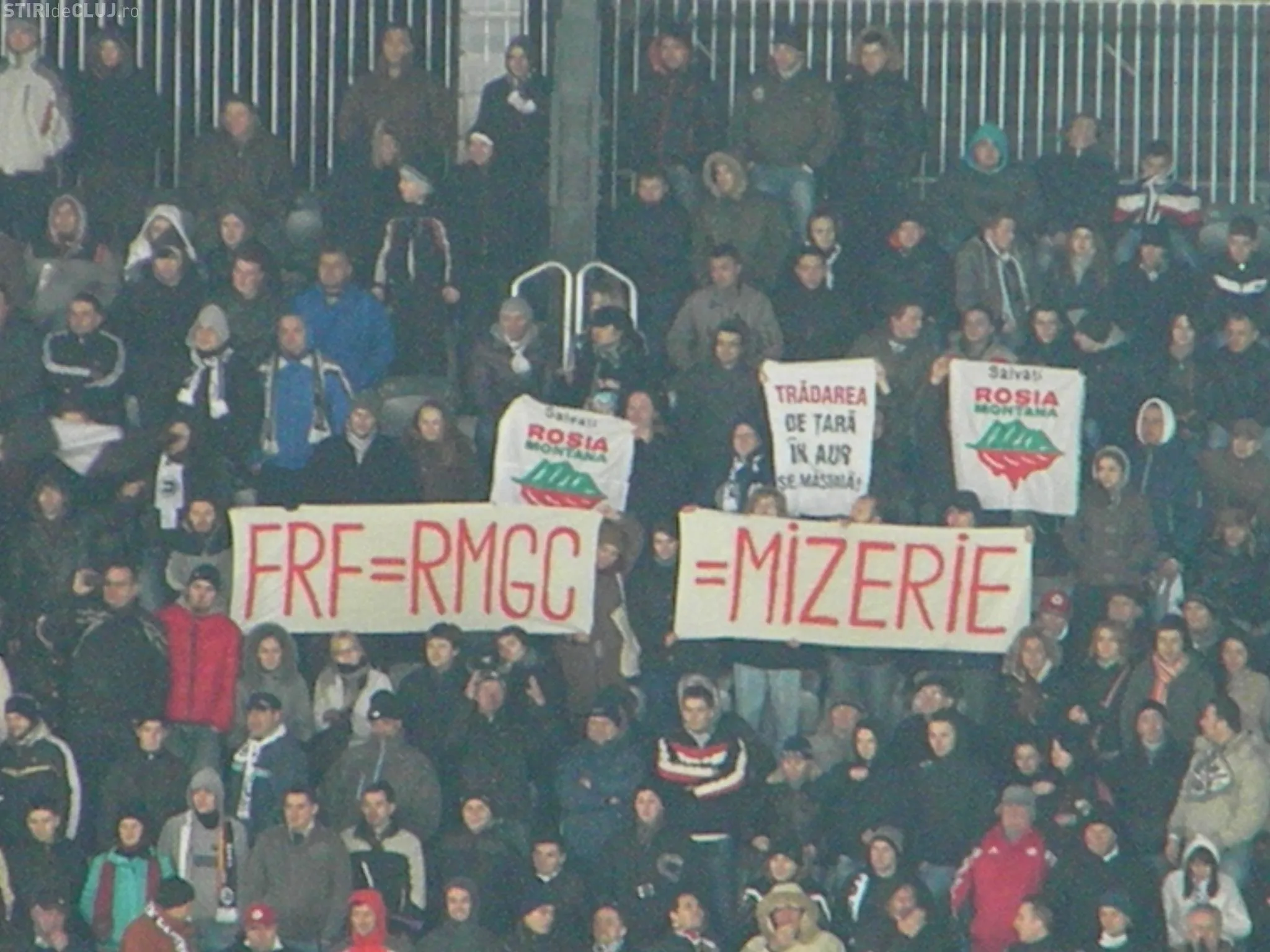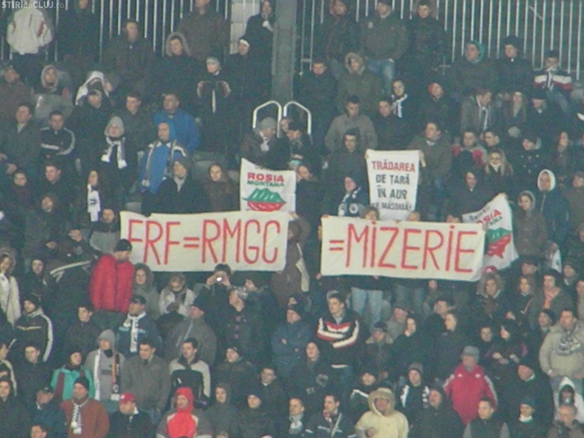 "FRF = RMGC = MIZERIE", banner de protest pe Cluj Arena FOTO
