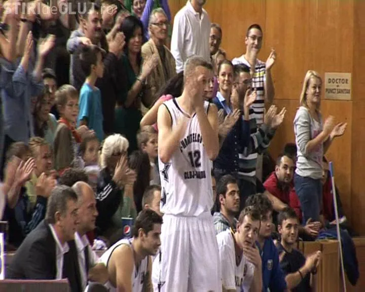 Pivotul american al echipei U Mobitelco Cluj, Rob Thomson, si-a luat ramas bun de la fani la finalul meciului cu BC Timisoara, de sambata seara.