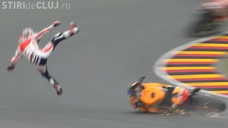 Dani Pedrosa a fost aruncat din șaua motocicletei și a aterizat pe claviculă. Testele medicale au arătat că nu a suferit nicio fractură, dar Pedrosa a fost dus la spital pentru investigații suplimentare, anuță Digi Sport.