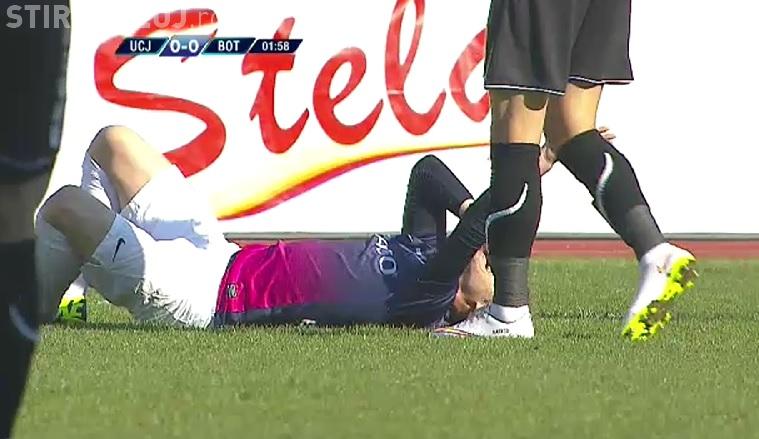 Accidentare gravă la ”U” Cluj - FC Botoșani. I s-a umplut fața de sânge