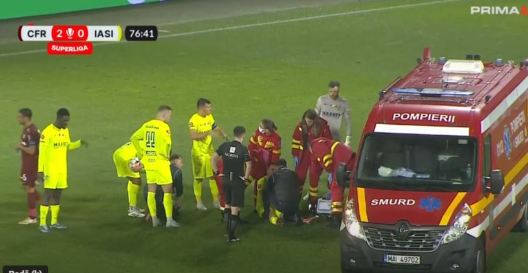 Ambulanța pe teren la meciul CFR Cluj- Poli Iași. Un jucător nu a mai putut respira VIDEO