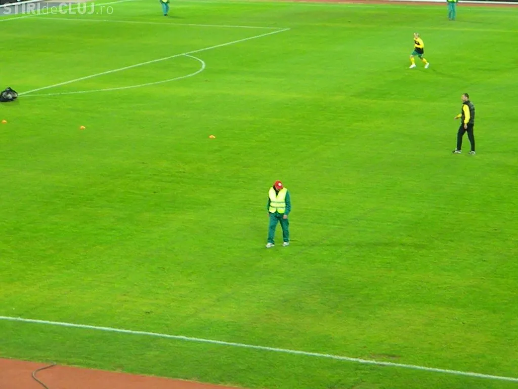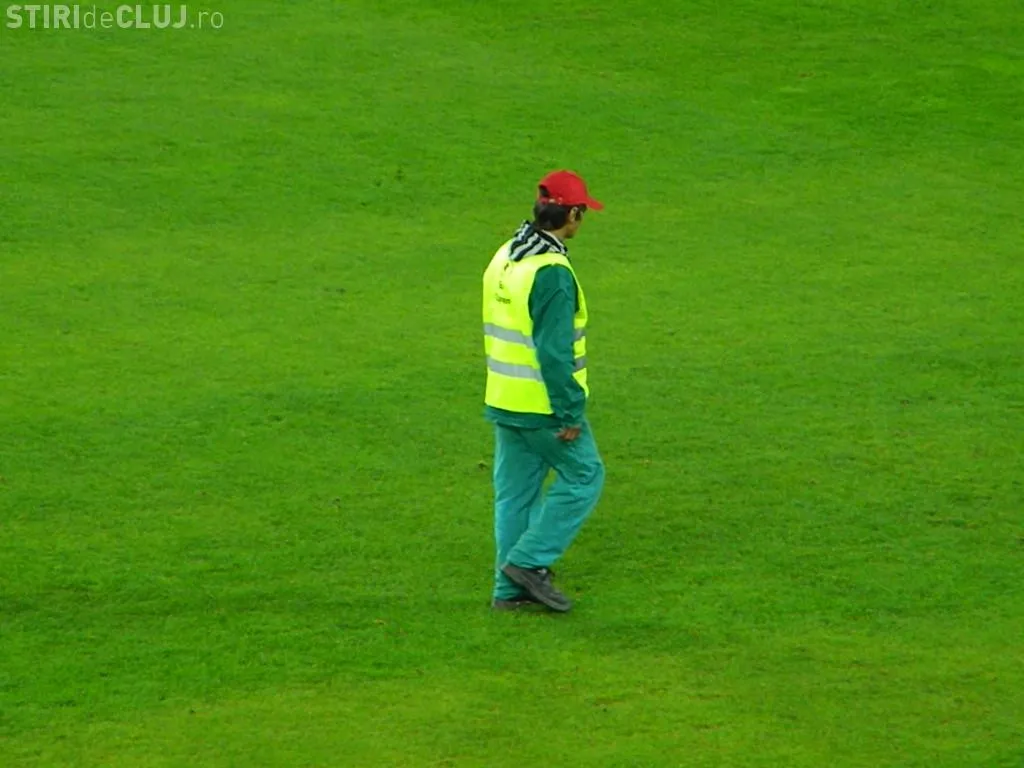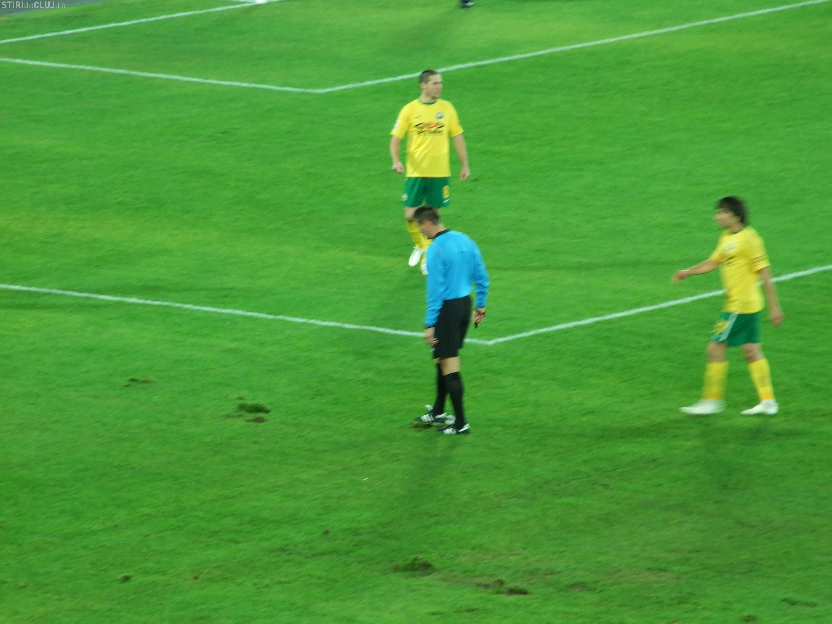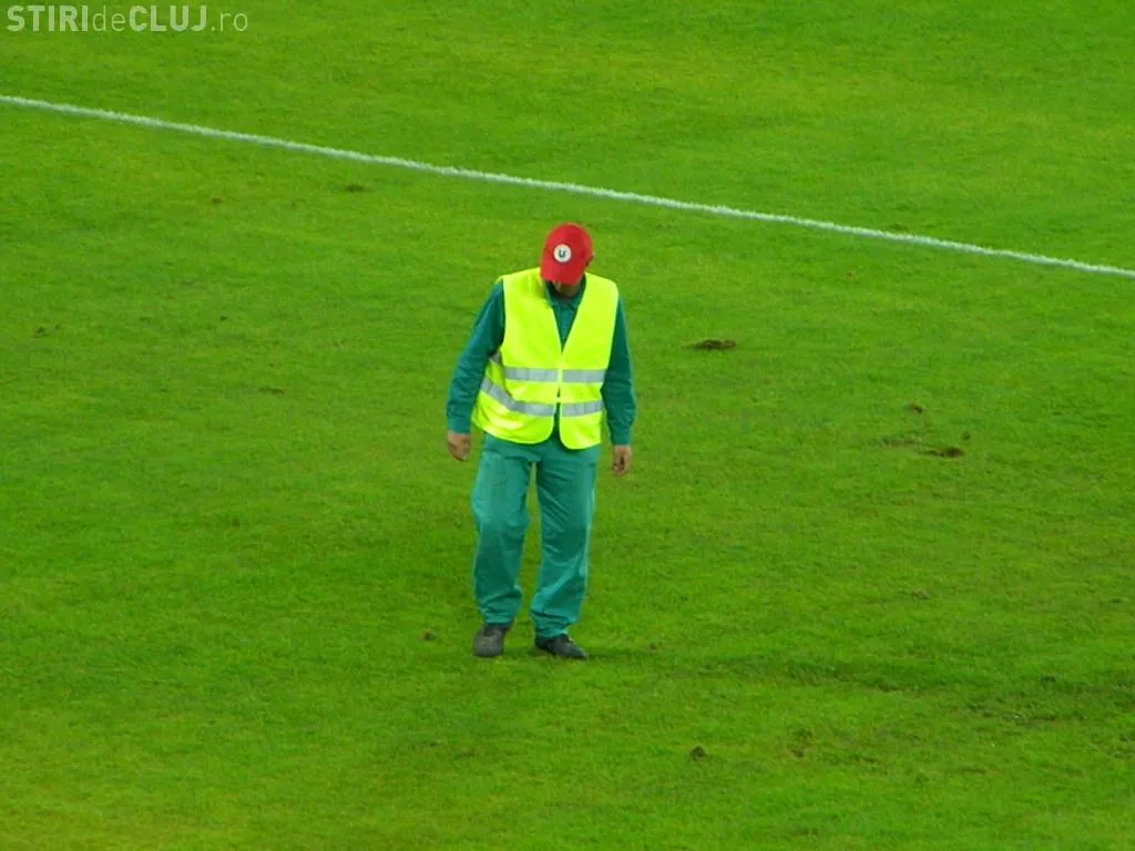 Arbitrul a "aranjat" cu piciorul gazonul sarit de pe Cluj Arena la meciul U Cluj - Kuban VIDEO si FOTO