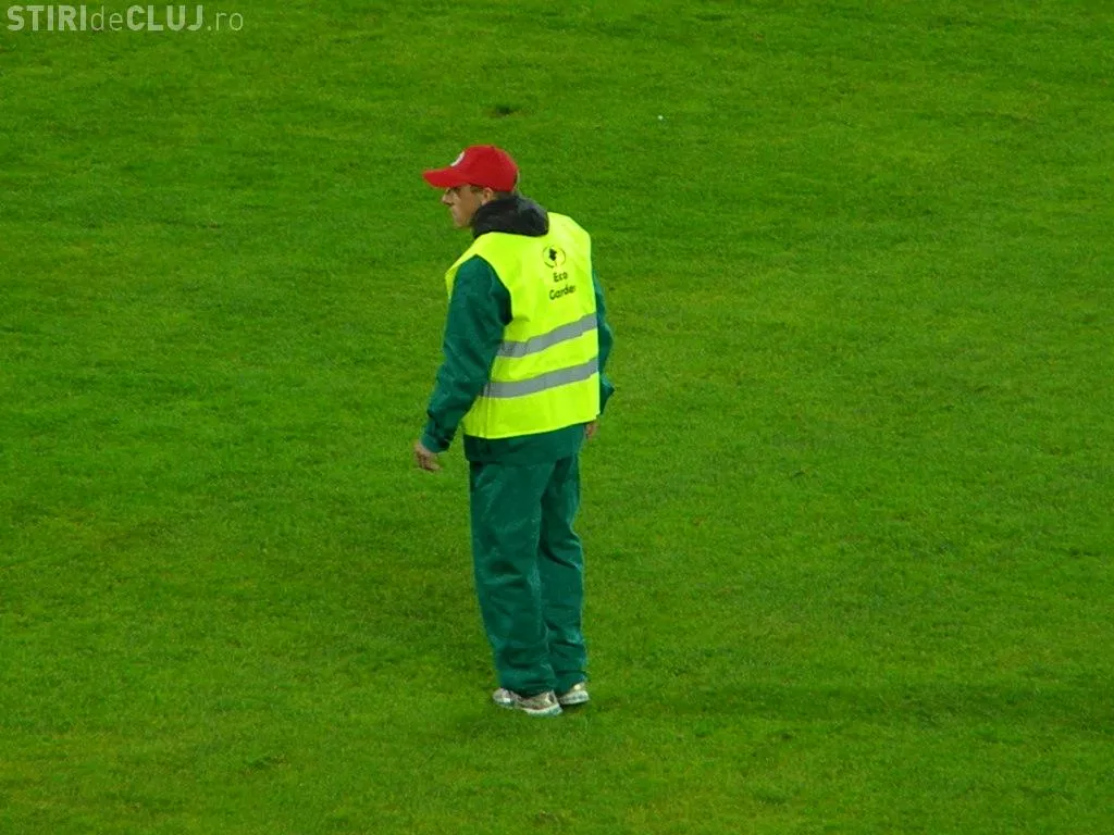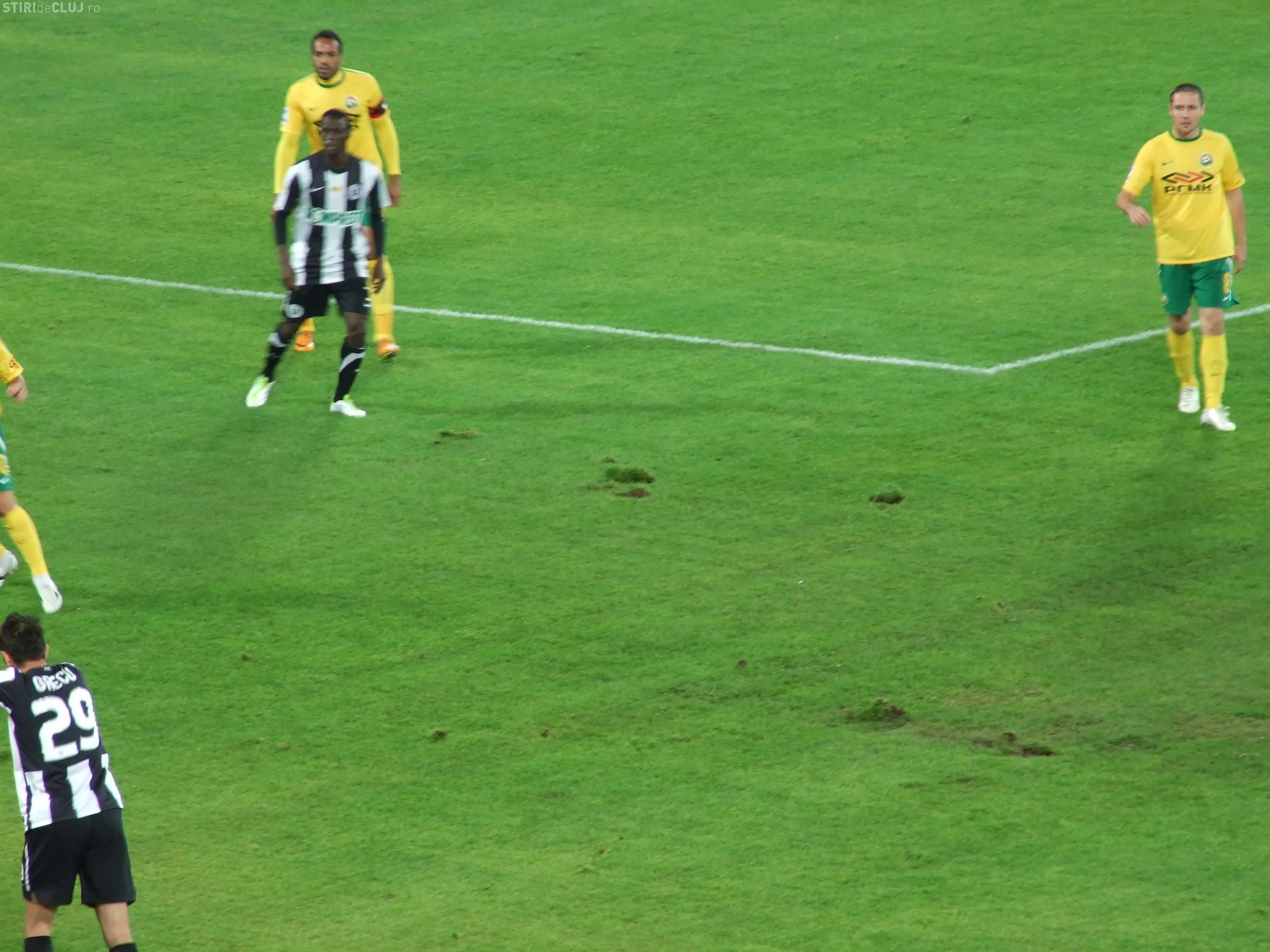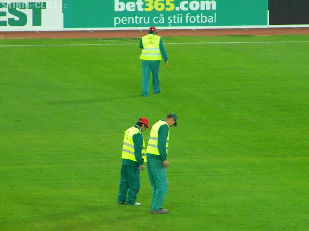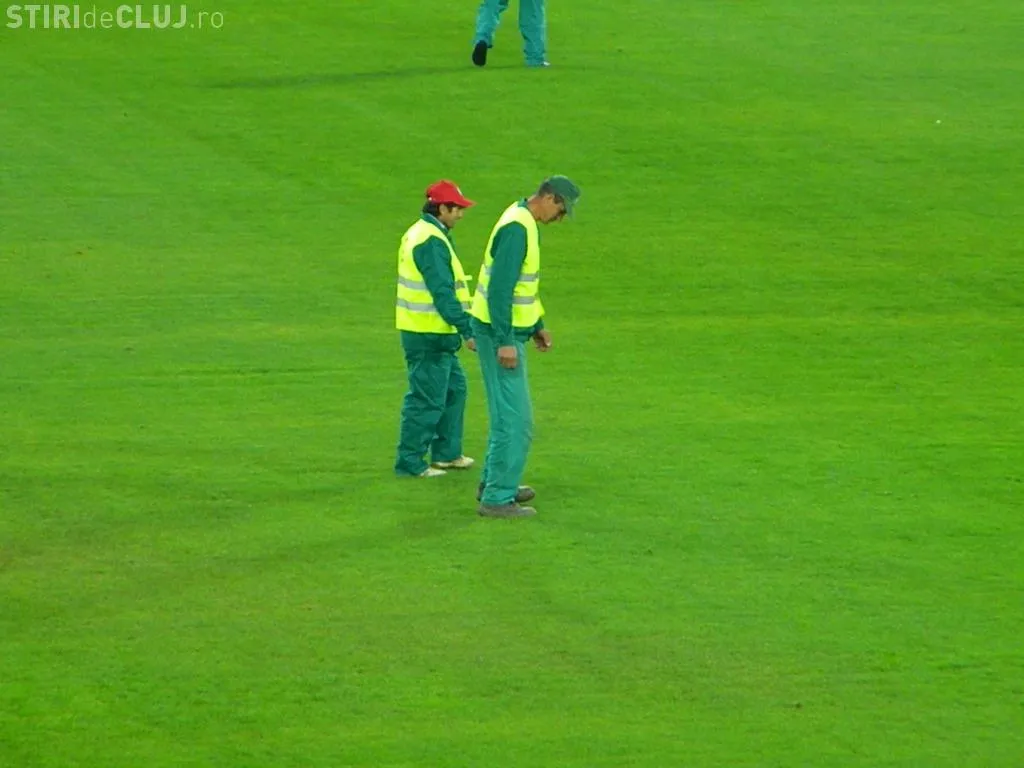 Gazonul de pe Cluj Arena a dat semne de "slabiciune" mai ales in prima repriza, cand arbitrul Cristian Balaj a fost nevoit sa batatoreasca cateva brazde desprinse din gazon.