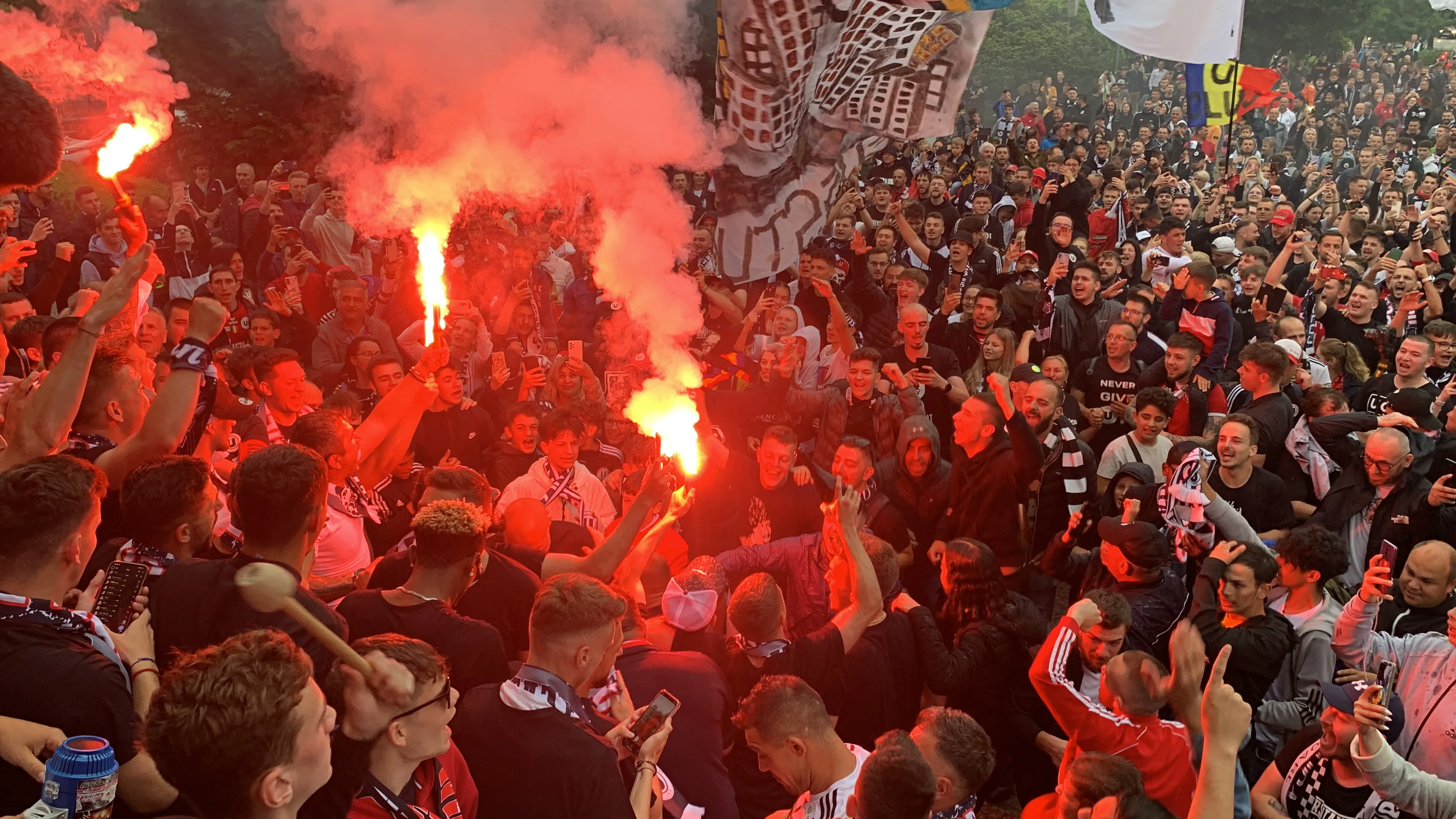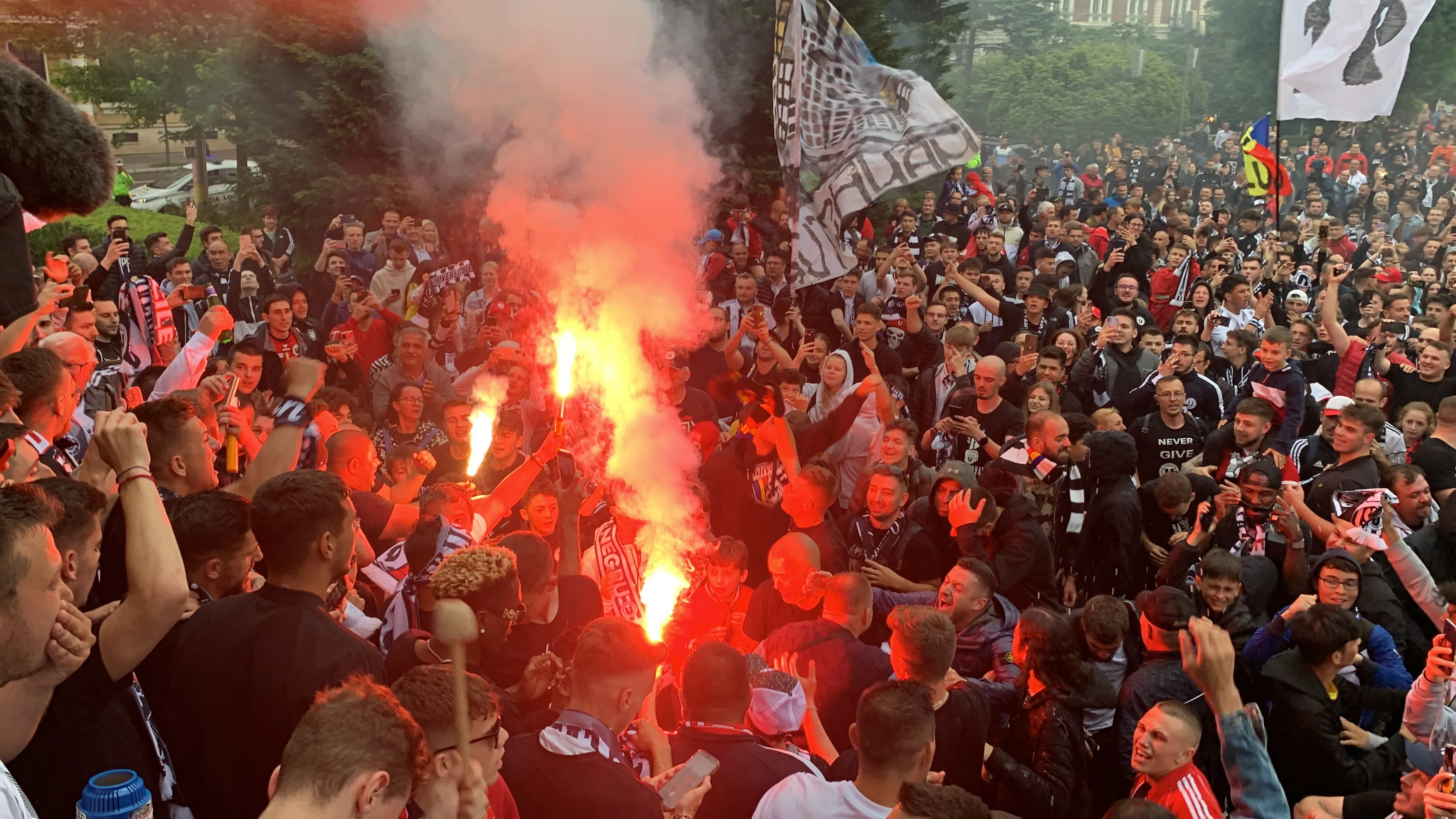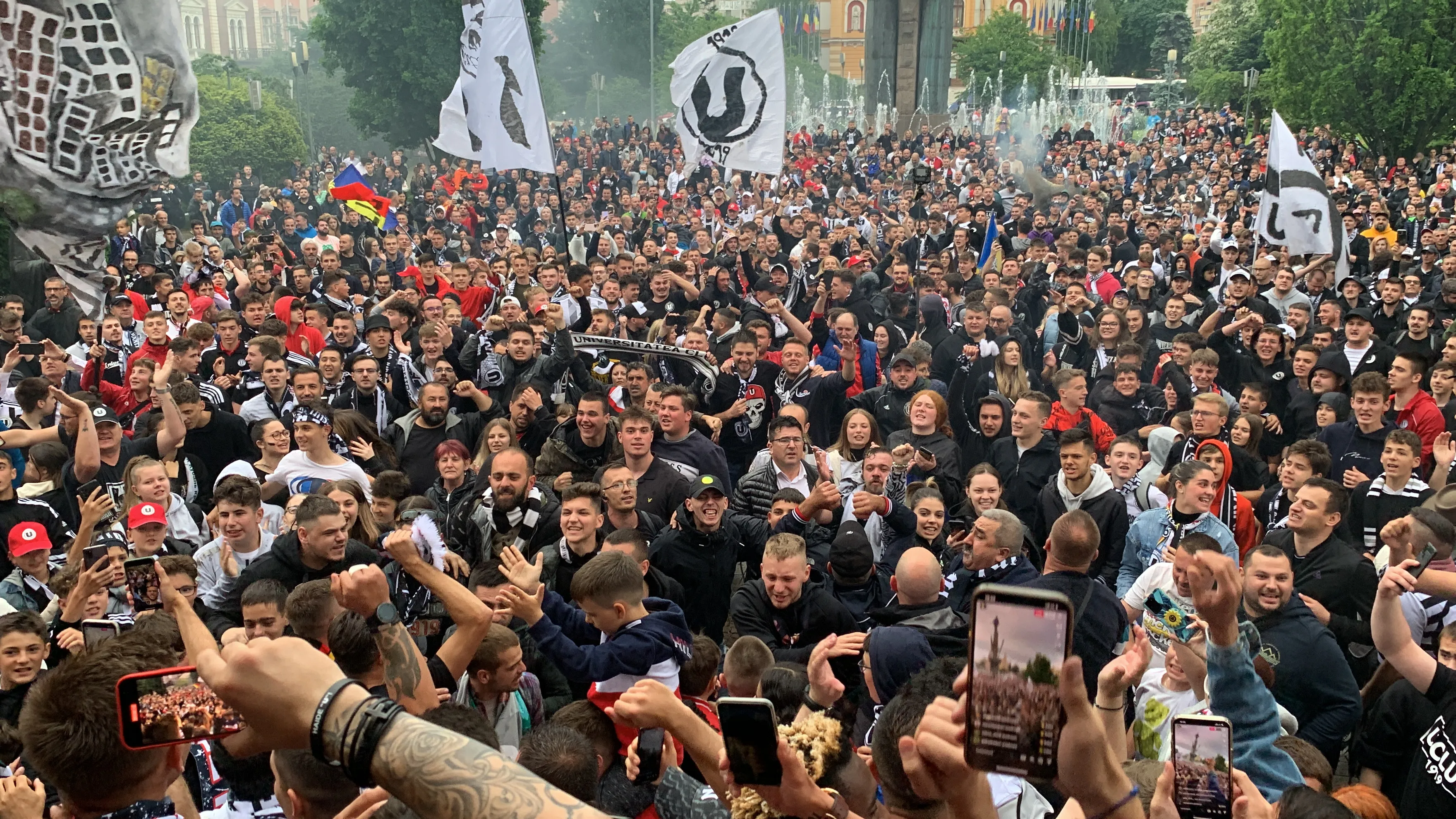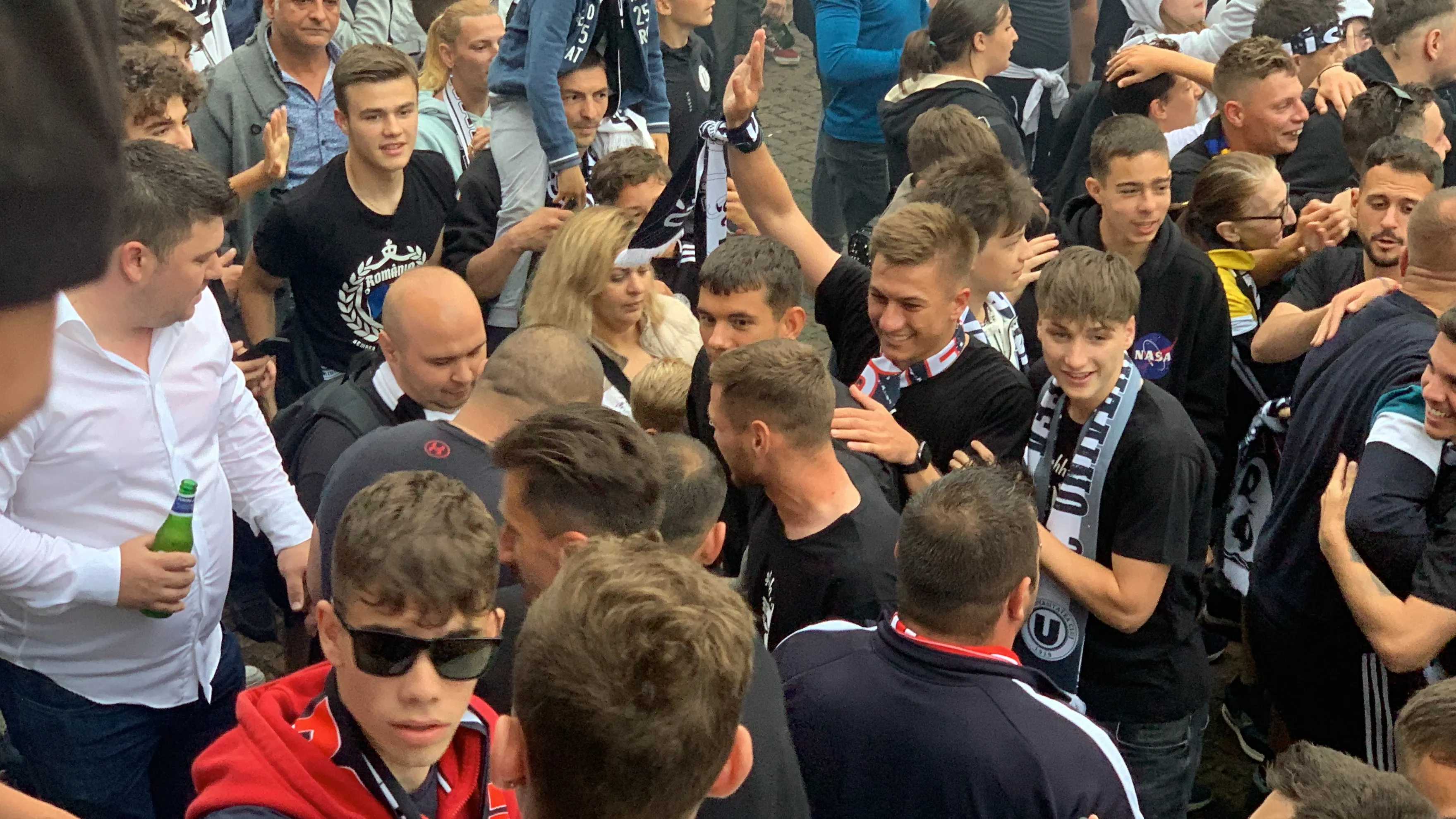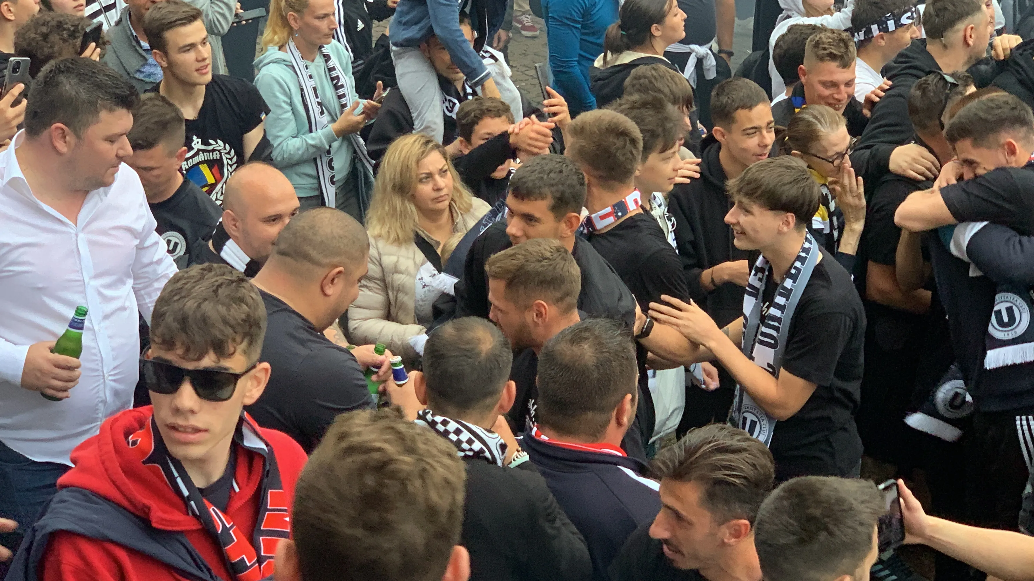 Suporterii U Cluj au invadat, luni seara, Piața Avram Iancu, din Cluj-Napoca, pentru a sărbători promovarea în Liga 1, alături de jucători. Fanii s-au adunat în Piață încă de la ora 19:19, iar jucătorii au ajuns la ora 20:00, moment în care a izbucnit nebunia.