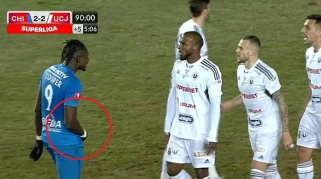 Godberg Cooper (25 de ani), atacantul Chindiei, a făcut un gest obscen față de adversarii de la U Cluj, pe finalul meciului încheiat 2-2.
