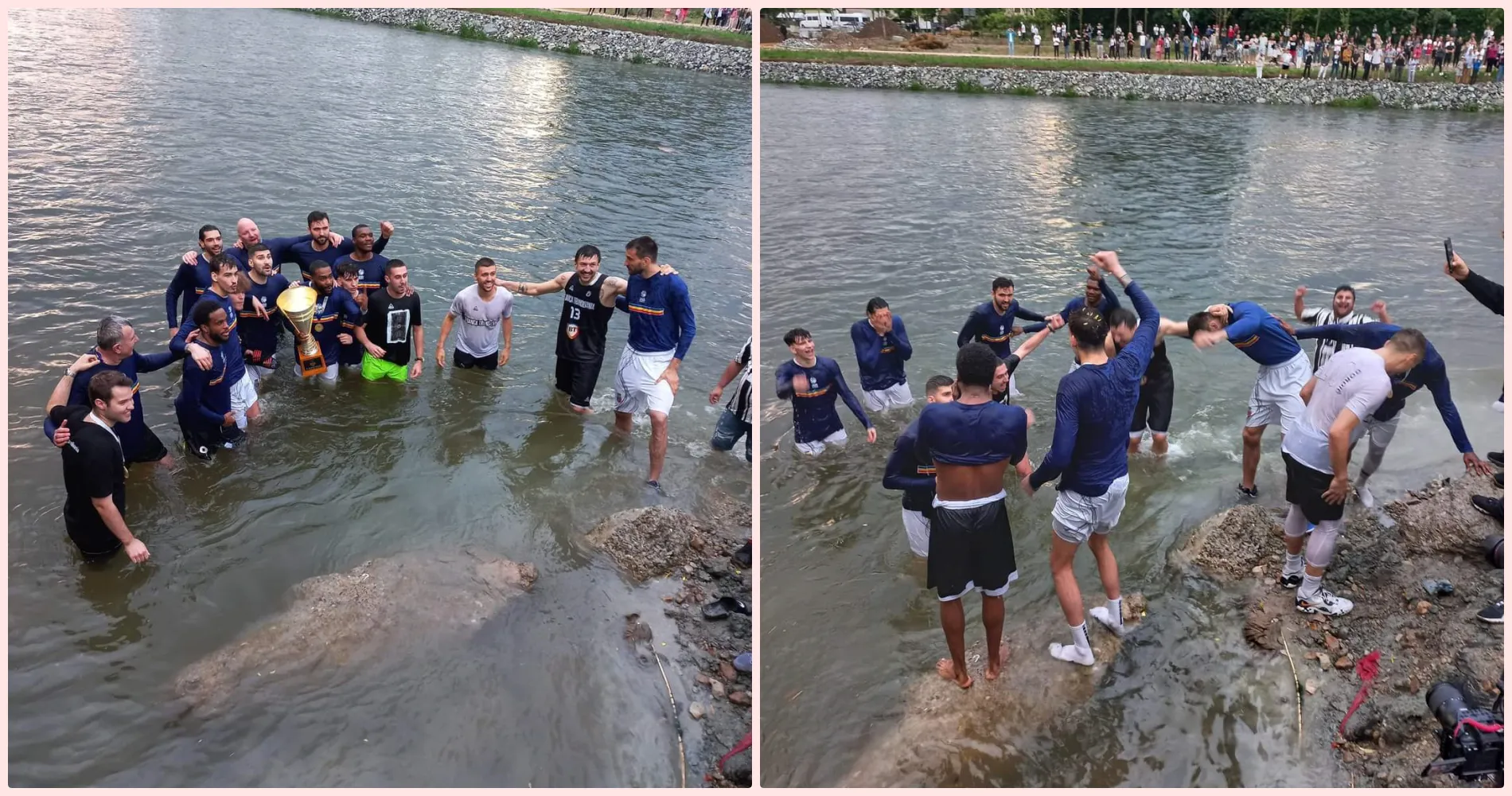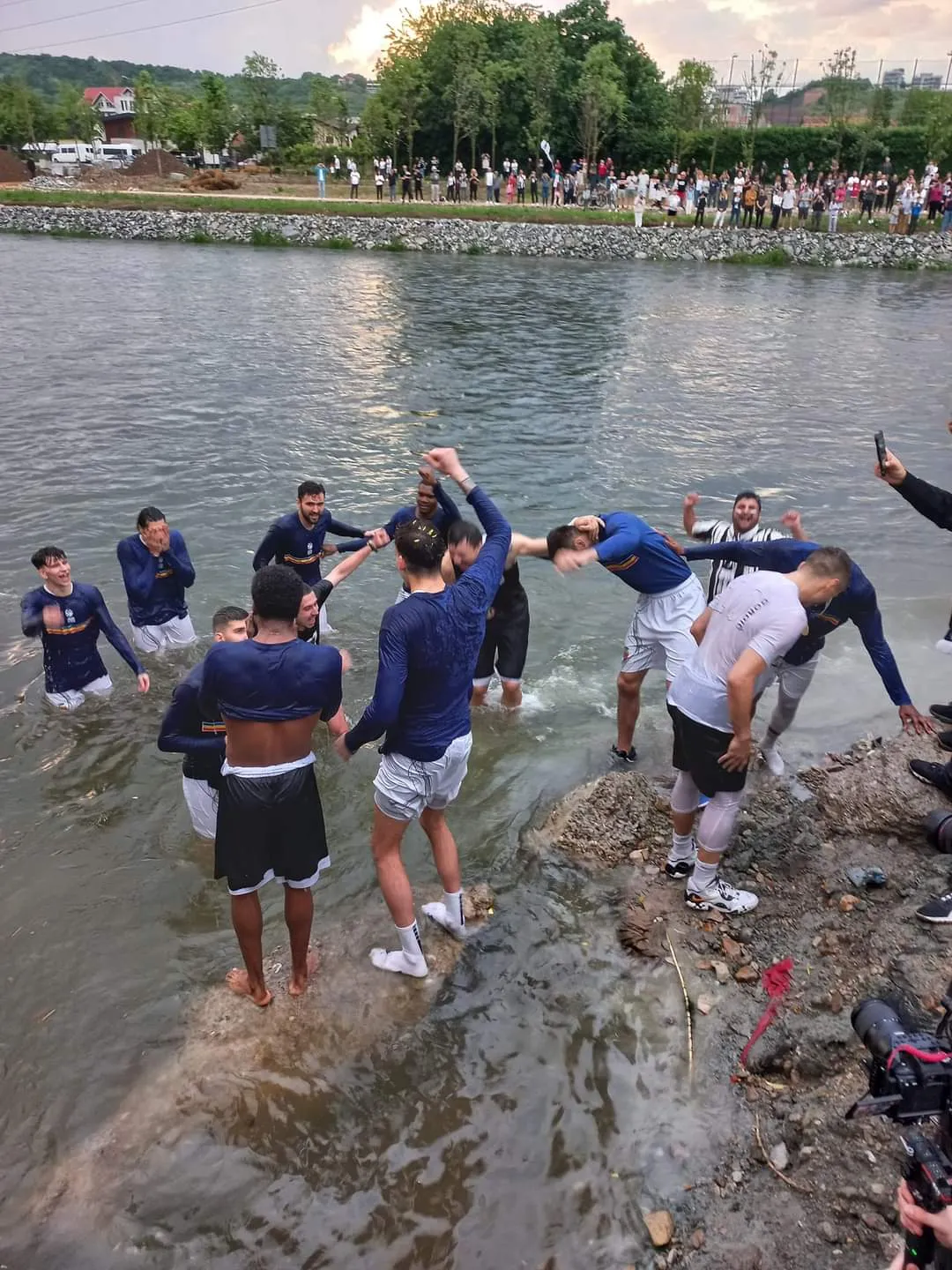 Au făcut baie în Someș! Campionii de la U BT au respectat tradiția - VIDEO