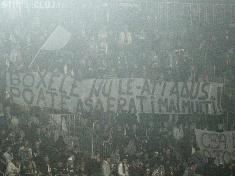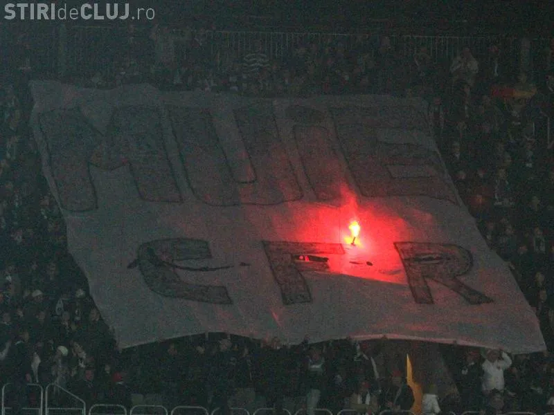 Pe un alt banner, suporterii U Cluj au scris ”M..e CFR”.