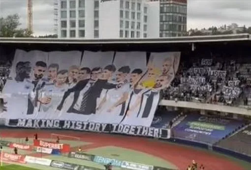 Suporterii transmit și în acest fel aprecierea pentru performanța istorică a echipei, calificată în premieră în play-off și prezentă din nou, după 53 de ani, în cupele europene.