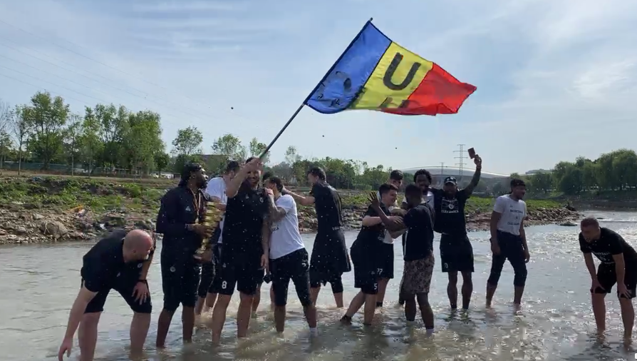Baschetbaliștii de la U Banca Transilvania au făcut baie în Someș. Aceasta e tradiția când se câștigă titlul - VIDEO