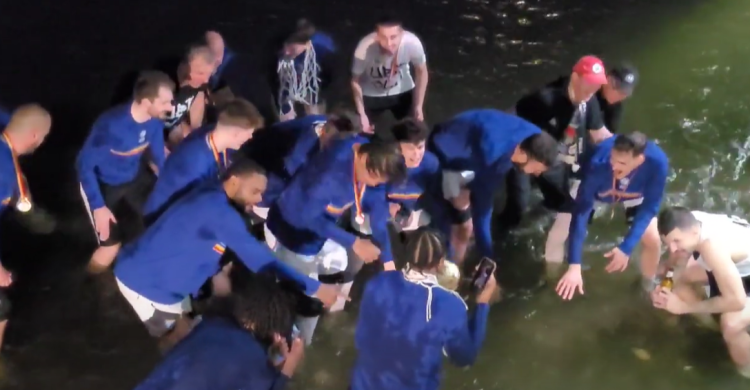 Baschetbaliștii de la U Bt au făcut tradiționala baie în Someș după victoria cu Oradea de aseară VIDEO