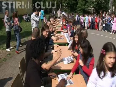 Baschetbalistii de la U Mobitelco Cluj le-au dat autografe elevilor la Liceul "Onisifor Ghibu" din cartierul Grigorescu, in cadrul festivalului Ghibstock.