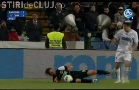 Jucatorul echipei Pandurii Targu Jiu a sesizat ca poate scoate mai mult din acea faza si a cazut teatral la pamant. Bazzi a fost eliminat de central, care a crezut probabil ca si-a lovit dur adversarul.